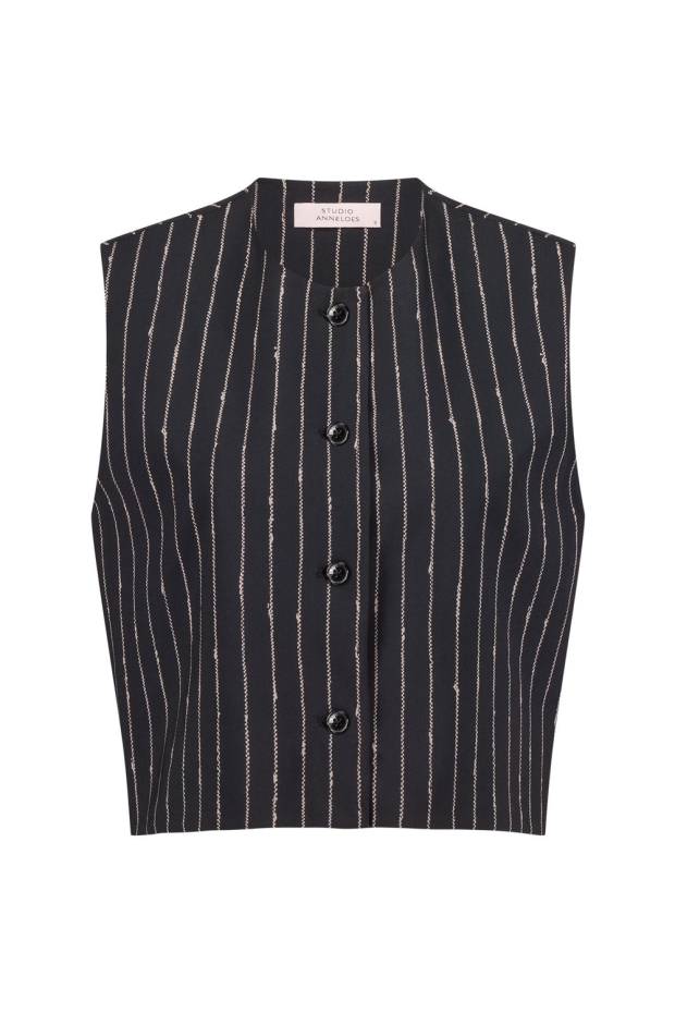 Maak kennis met de Sjuul pinstripe gilet van STUDIO ANNELOES, een stijlvolle toevoeging aan je garderobe. Dit zwarte gilet met subtiele pinstripe is perfect voor de modebewuste vrouw die houdt van kwaliteit en comfort.