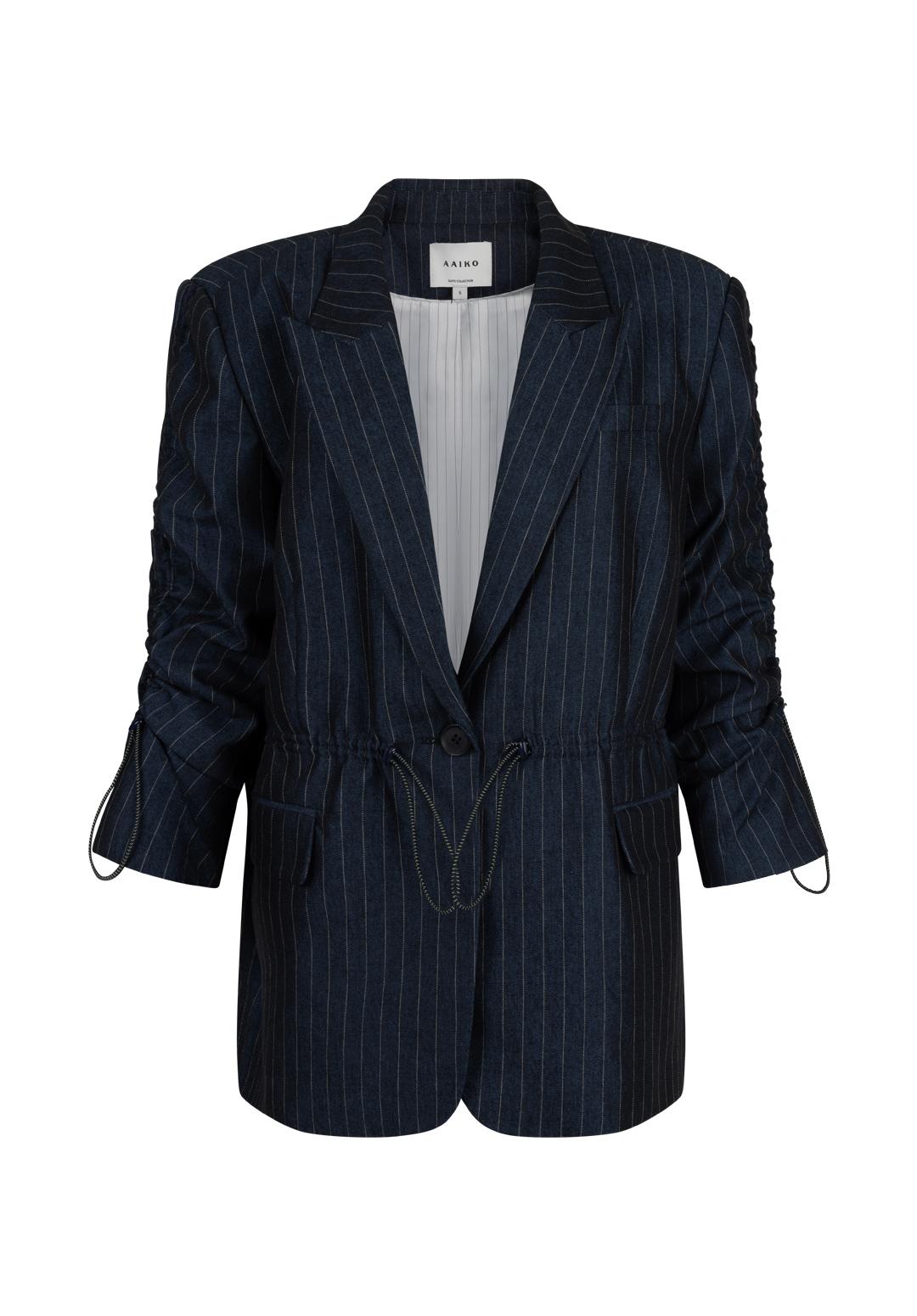 Maak kennis met de stijlvolle Aaiko Brynn Co 510 blazer in een elegante donkerblauwe tint. Perfect voor zomerse dagen in Nederland, deze blazer voegt een vleugje klasse toe aan elke outfit.