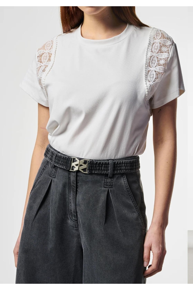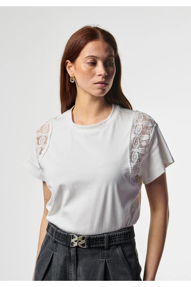 Maak kennis met de Aaiko CEYDA CO 177, een stijlvol dames T-shirt met korte mouwen in een frisse off-white kleur. Perfect voor de Nederlandse zomerdagen, dit veelzijdige shirt is een must-have voor elke garderobe.