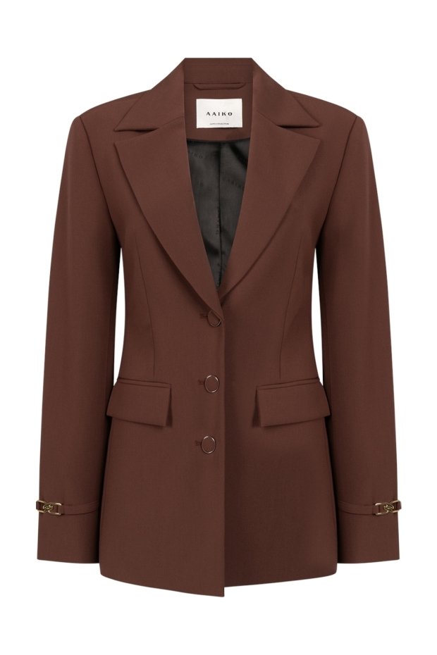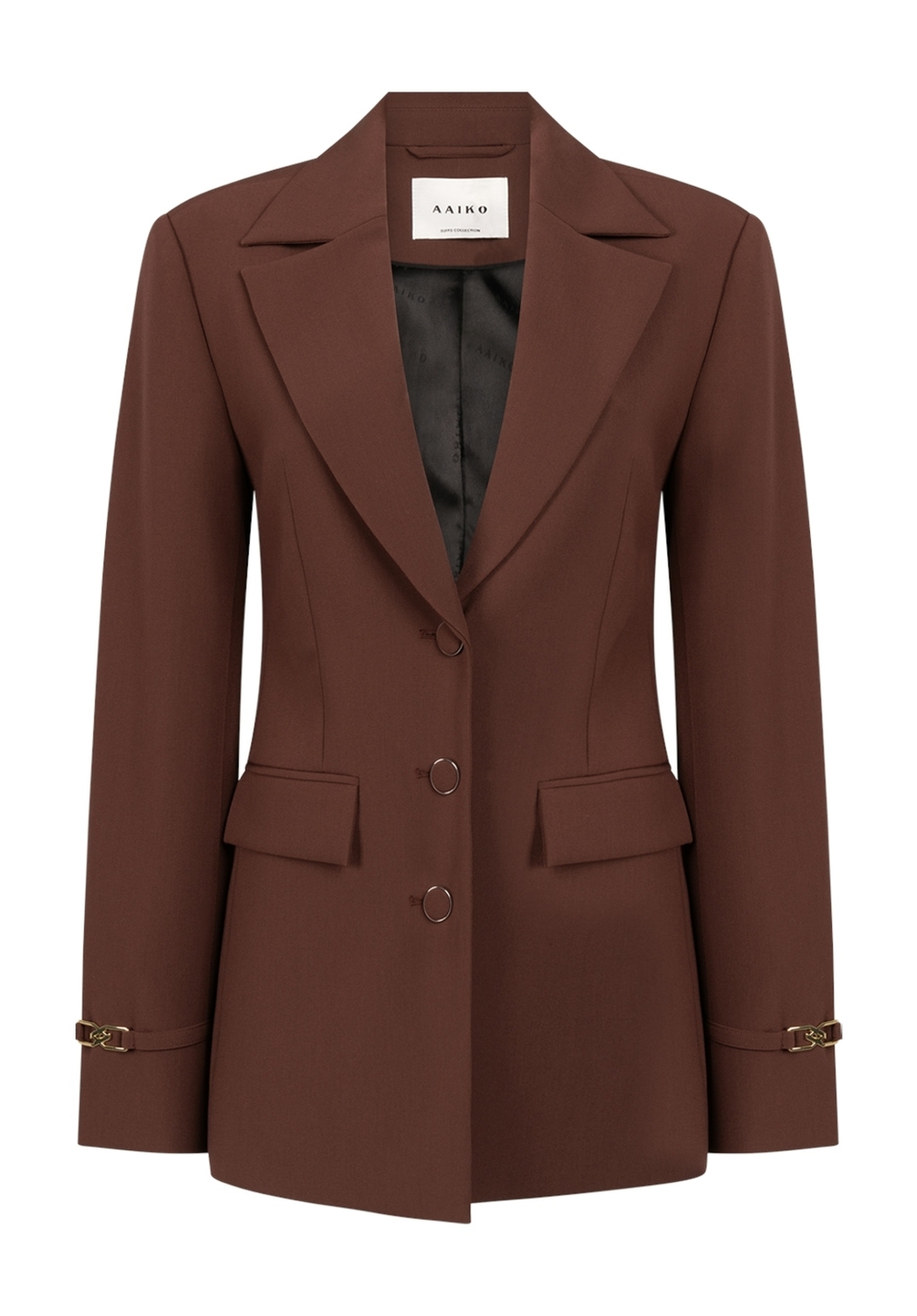 Maak kennis met de EMILIE FANCY blazer van Aaiko in een warme, bruine tint genaamd Spicy Chocolate. Deze stijlvolle damesblazer is perfect voor de Nederlandse winter en voegt een vleugje elegantie toe aan elke outfit.