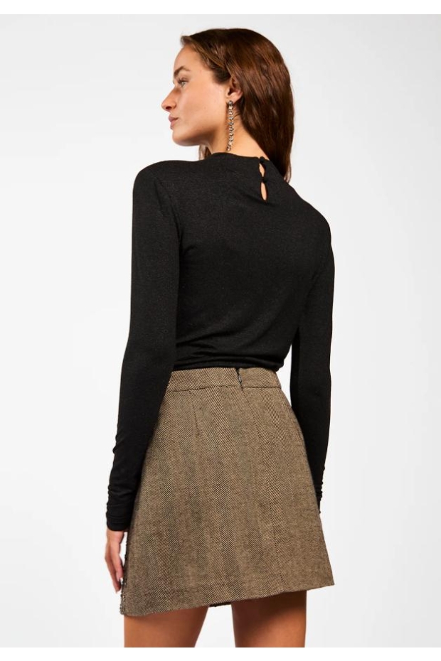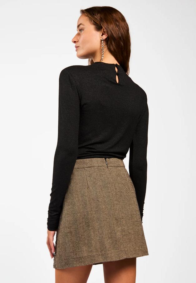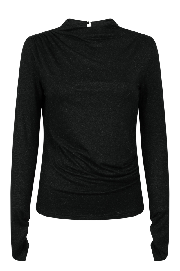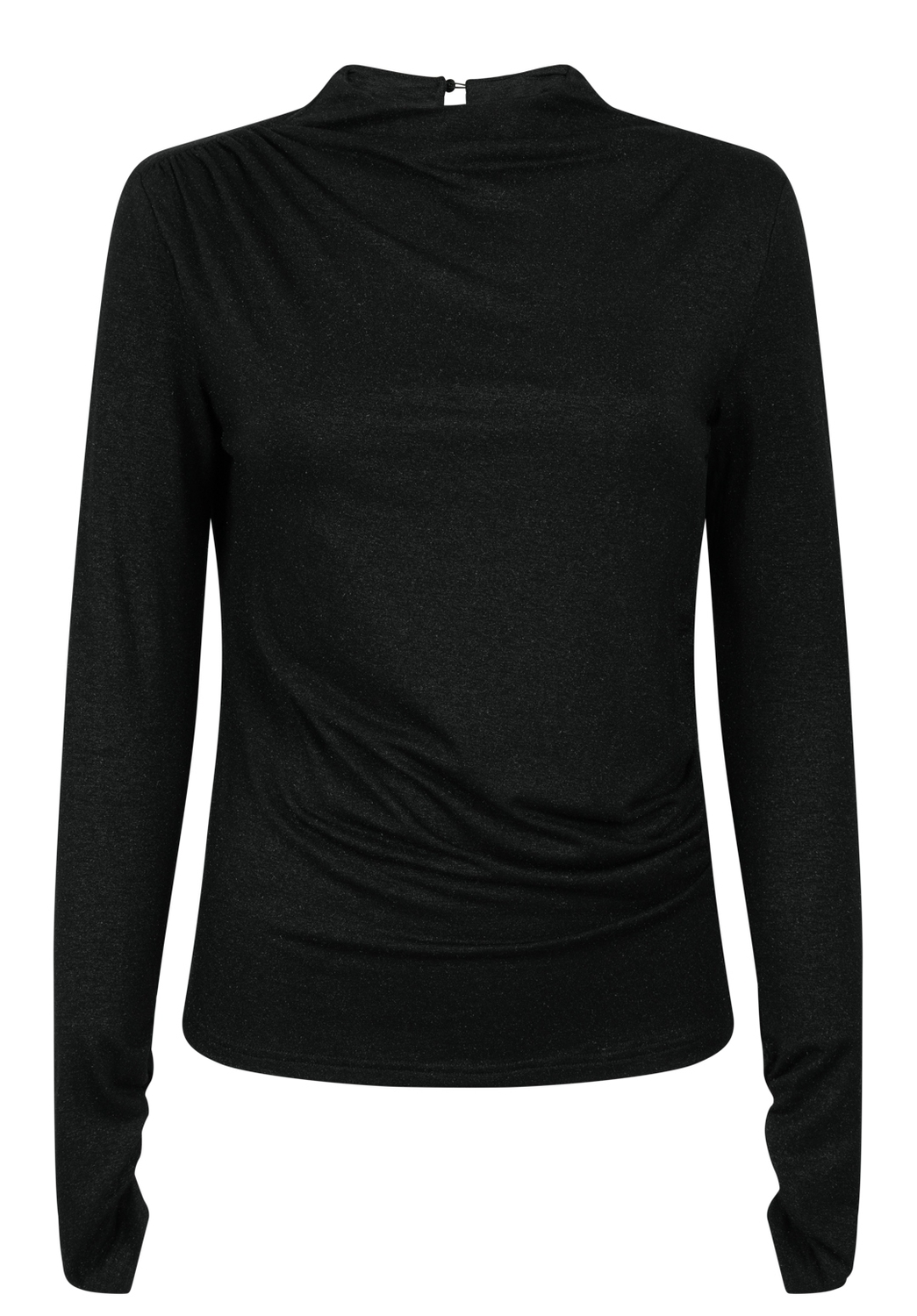 Maak kennis met het stijlvolle T-shirt met lange mouwen van Aaiko, perfect voor de modebewuste dame. Dit zwarte shirt is een veelzijdige toevoeging aan je wintergarderobe en biedt comfort en stijl in één.