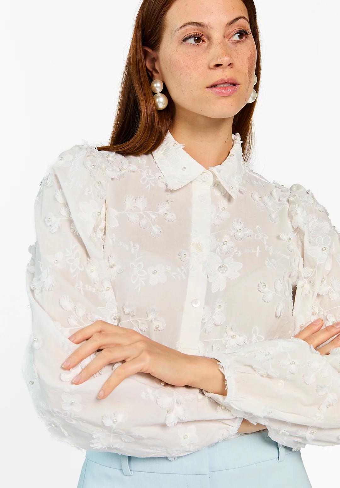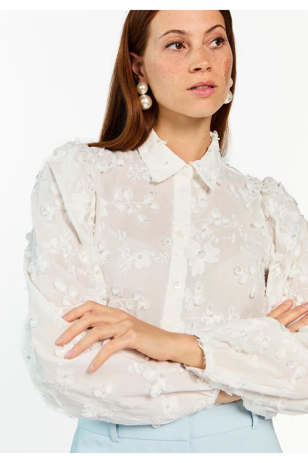 Maak kennis met de elegante Aaiko LIEN BEADS CO 522 blouse in een frisse off-white tint. Perfect voor de Nederlandse zomerdagen, deze blouse voegt een vleugje verfijning toe aan elke outfit.