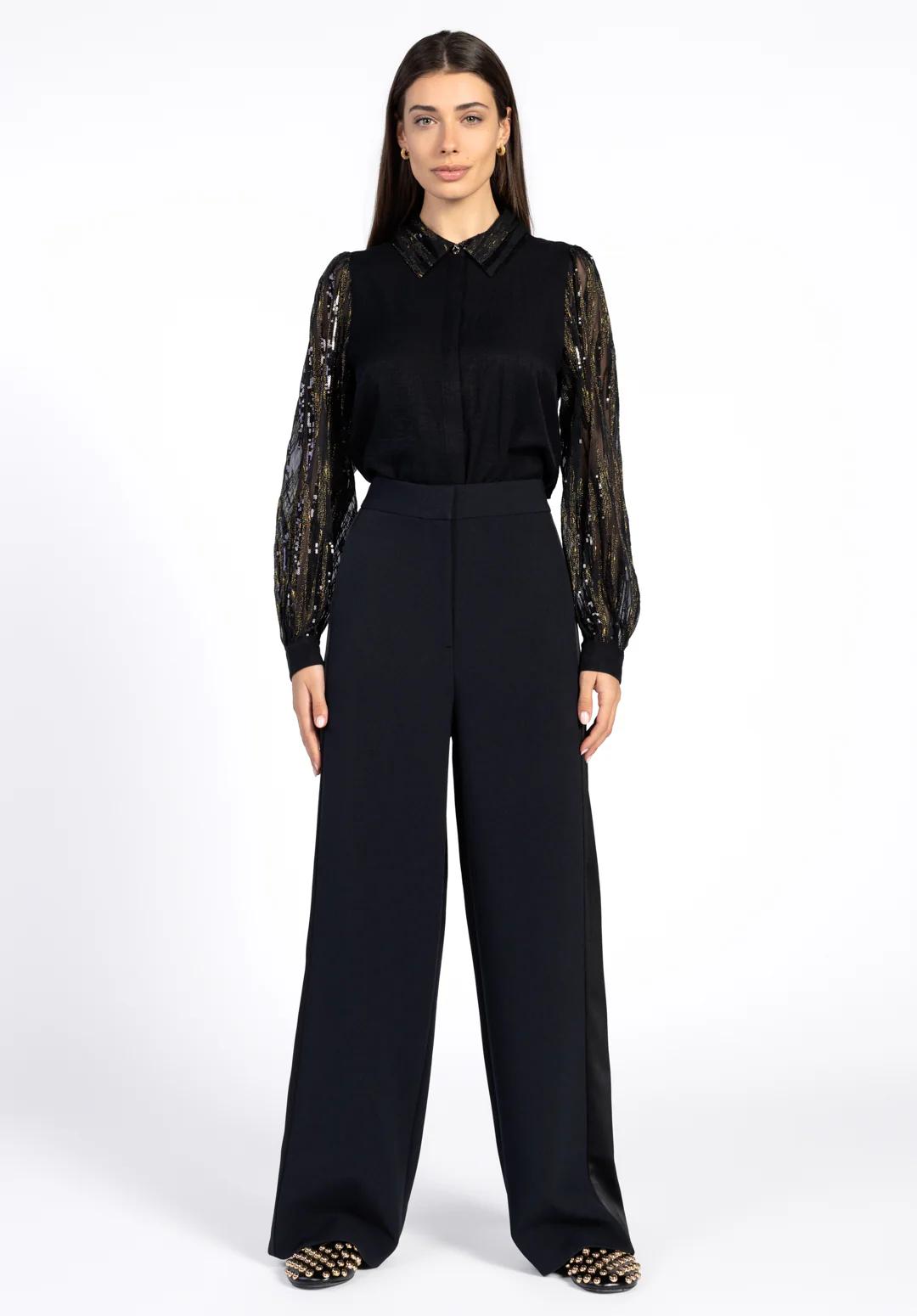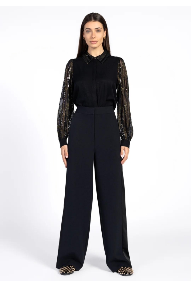 Ontdek de elegante en stijlvolle blouse van Aaiko, perfect voor de modebewuste vrouw. Deze zwarte blouse met pailletten is een echte eyecatcher en ideaal voor de wintermaanden. Of je nu een avondje uit gaat of een speciale gelegenheid hebt, deze blouse laat je stralen.