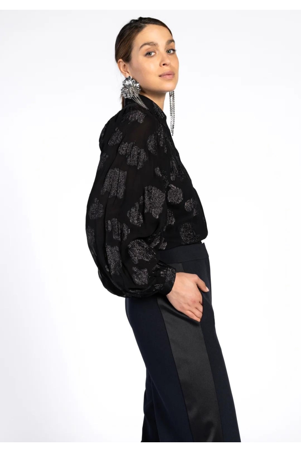 Maak kennis met de elegante zwarte blouse van Aaiko, perfect voor de modebewuste vrouw. Deze blouse is een veelzijdige toevoeging aan je wintergarderobe en ideaal voor zowel werk als een avondje uit. Combineer het met een stijlvolle rok of je favoriete jeans voor een complete look.