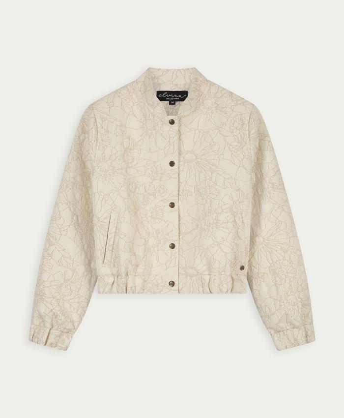 Ontdek de ELVIRA CASUALS Bomber Aurora in een prachtige ecru tint, perfect voor de Nederlandse zomerdagen. Deze stijlvolle damesjas combineert moeiteloos comfort met een trendy uitstraling, ideaal voor een wandeling langs de grachten of een zomerse avond in het park.