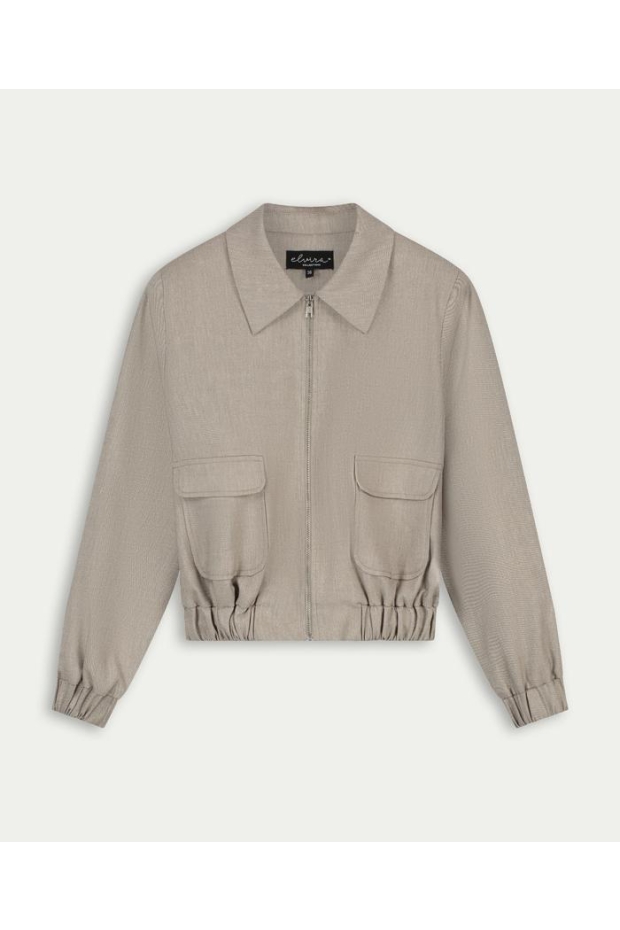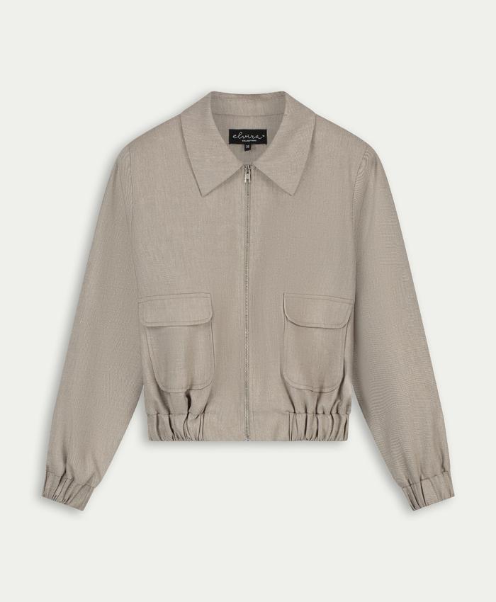 Ontdek de Bomber Zenzi van ELVIRA CASUALS, een stijlvolle damesjas in een zachte ecru tint. Perfect voor de Nederlandse zomers, deze jas voegt een vleugje elegantie toe aan elke outfit.
