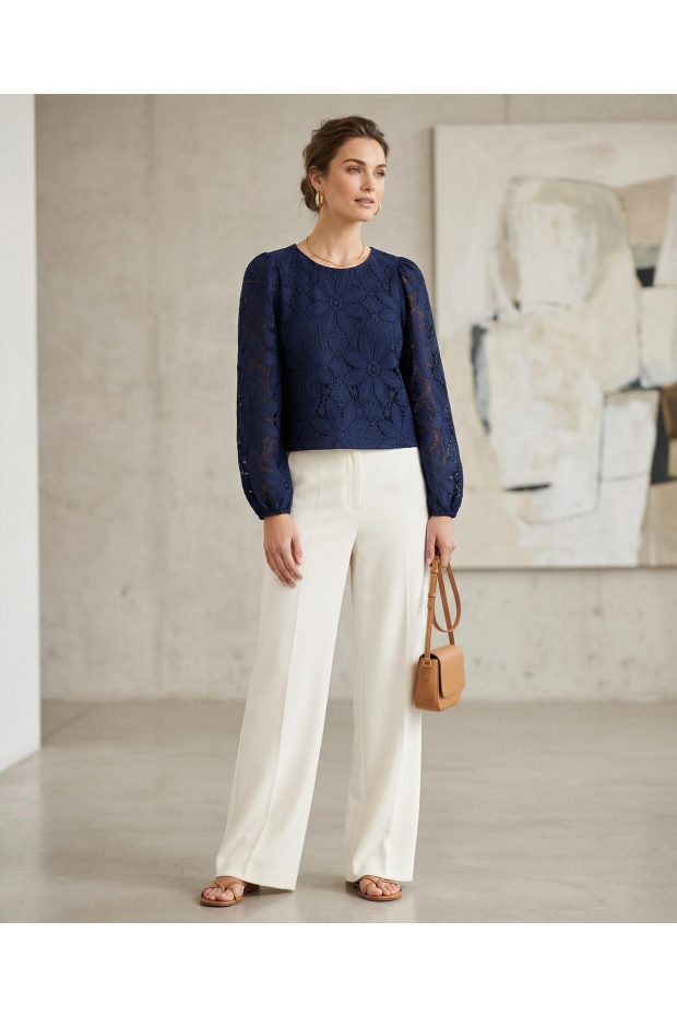 Maak kennis met de Top Charlie van ELVIRA CASUALS, een stijlvolle toevoeging aan je zomergarderobe. Deze donkerblauwe top met korte mouwen is perfect voor de modebewuste vrouw die houdt van comfort en veelzijdigheid.
