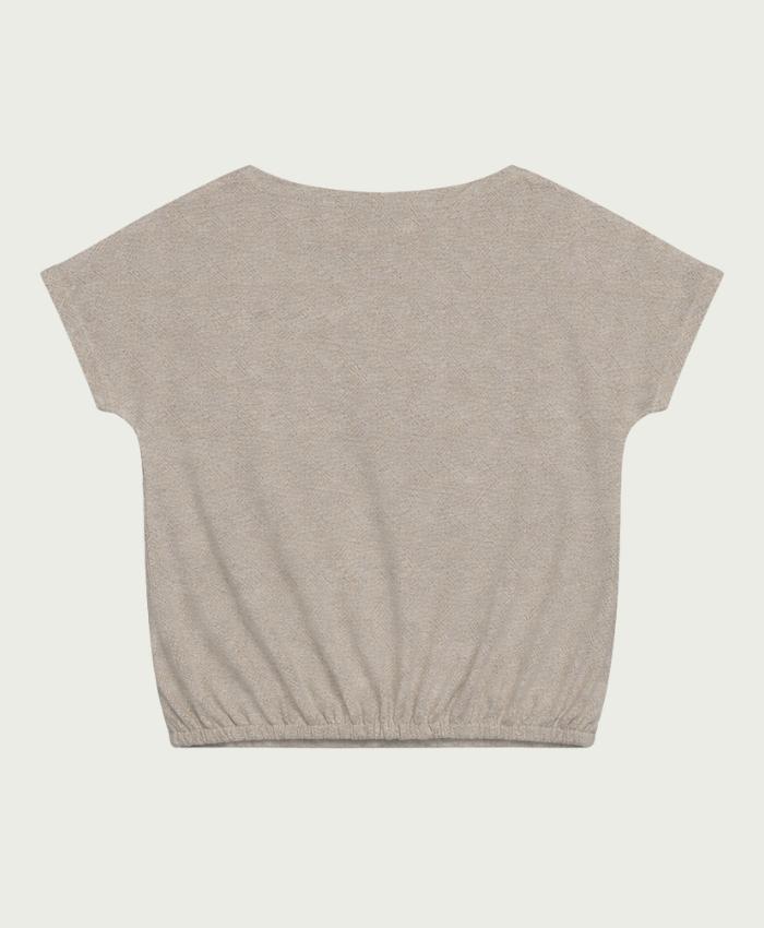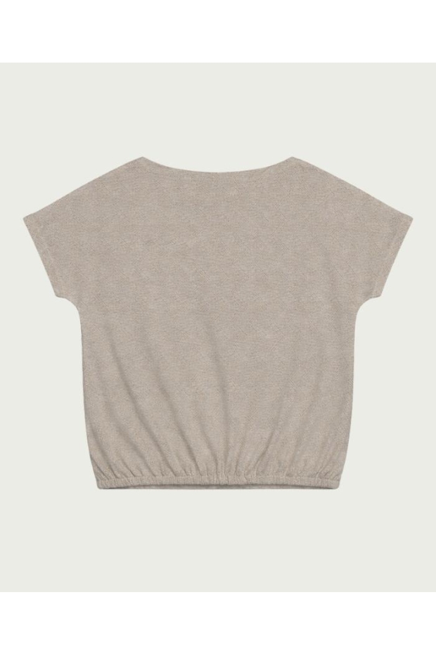 Ontdek de schitterende Top Artemis van ELVIRA CASUALS, een gouden T-shirt met korte mouwen dat perfect is voor de Nederlandse zomerdagen. Voeg een vleugje glamour toe aan je garderobe met deze stijlvolle top.