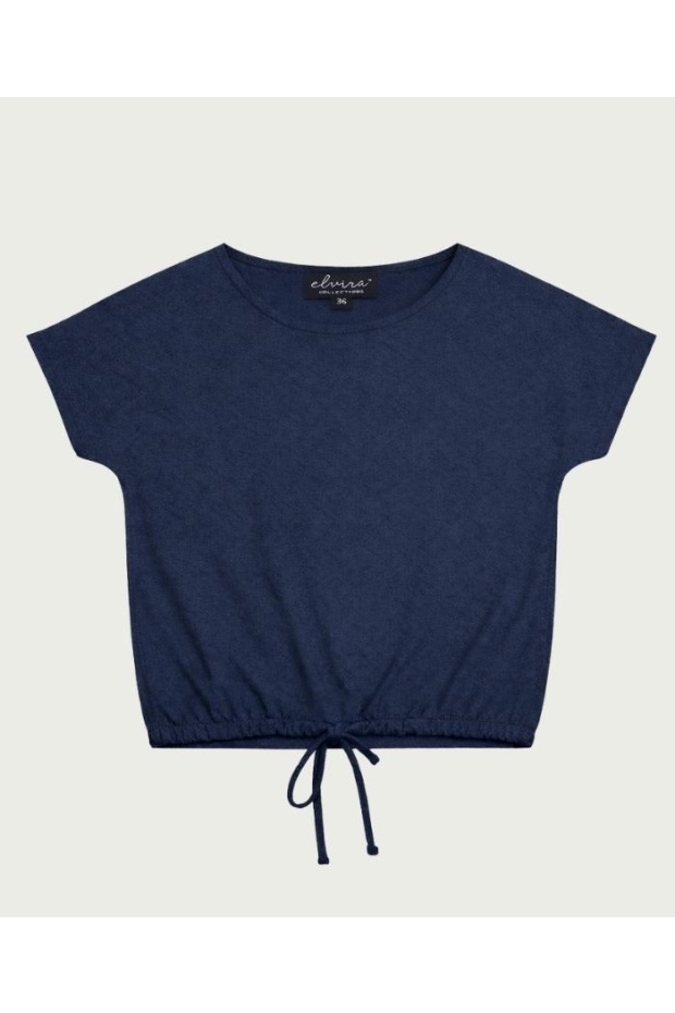 Maak kennis met de Top Artemis van ELVIRA CASUALS, een stijlvolle keuze voor de modebewuste vrouw. Deze donkerblauwe top met korte mouwen is perfect voor de Nederlandse zomers en voegt een vleugje elegantie toe aan elke outfit.
