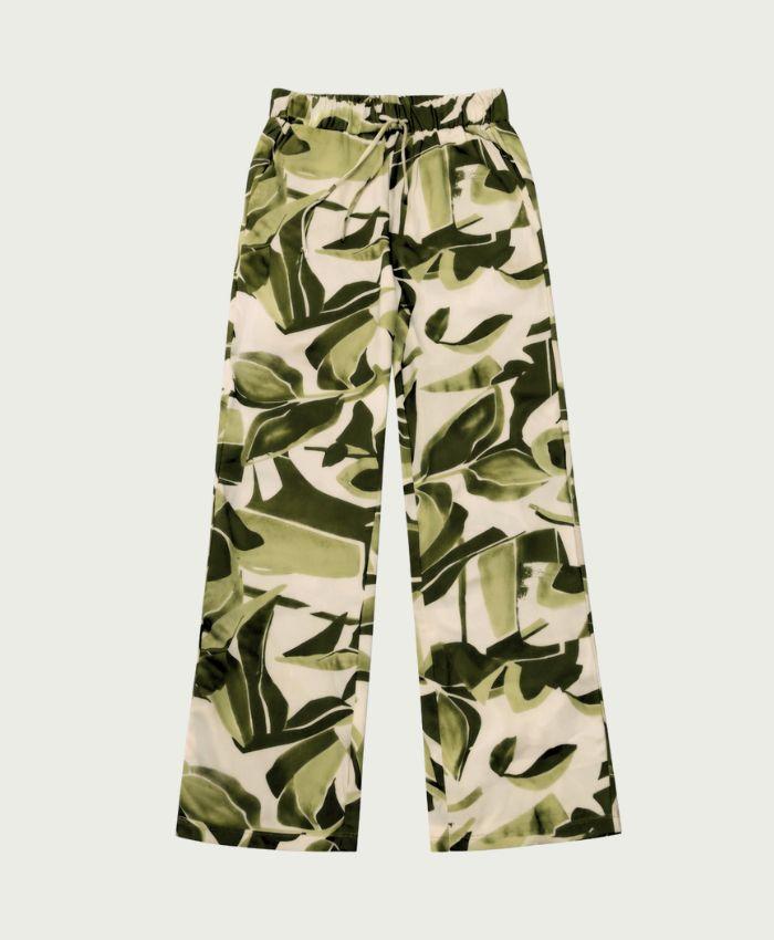 Maak kennis met de stijlvolle Trouser Mira van ELVIRA CASUALS, een must-have voor elke modebewuste vrouw. Deze groene broek met de unieke 'Green Desert Flower' print is perfect voor de Nederlandse zomerdagen.