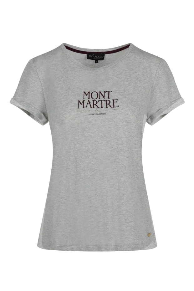 Maak kennis met de stijlvolle en comfortabele T-shirt Montmartre van Elvira Casuals. Dit grijze dames T-shirt met korte mouwen is perfect voor elke casual gelegenheid. Het combineert comfort met een optimale pasvorm, waardoor het een onmisbare toevoeging is aan je garderobe.