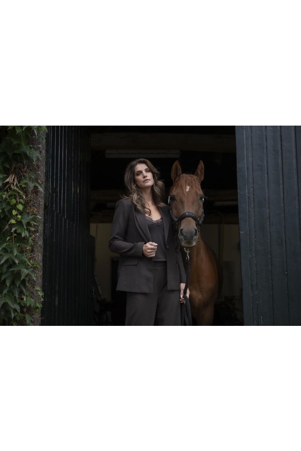 Maak kennis met de elegante Blazer Madde van Elvira Casuals in een stijlvolle donkerbruine tint. Deze blazer is perfect voor de modebewuste vrouw die op zoek is naar een veelzijdig en comfortabel kledingstuk voor de wintermaanden. Ideaal voor een chique uitstraling tijdens een wandeling langs de grachten of een dag op kantoor.