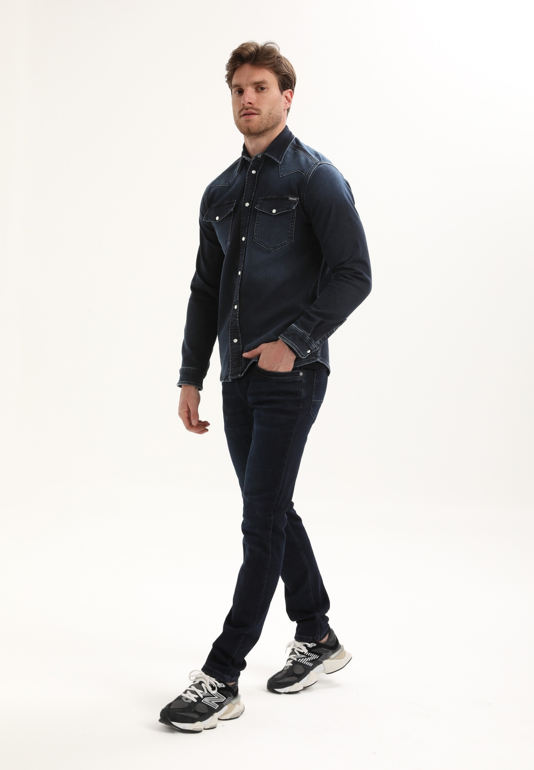 Maak kennis met het GABBIANO overhemd in jogg denim, een must-have voor de modebewuste man. Dit donkerblauwe overhemd is perfect voor de wintermaanden en biedt een stijlvolle uitstraling voor elke gelegenheid.