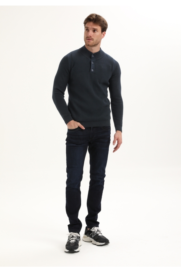 - Donkerblauwe kleur die gemakkelijk te combineren is met andere kledingstukken