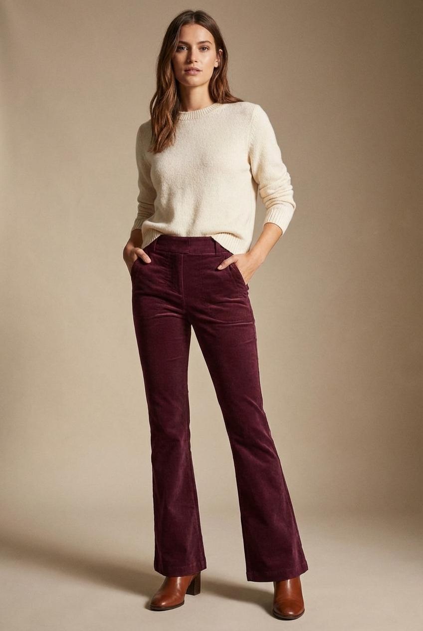 Ontdek de stijlvolle flair van de HELENA HART Broek Flair Velvet in een prachtige wijnrode kleur. Deze flared broek is een must-have voor de modebewuste vrouw en perfect voor de Nederlandse wintermaanden. Combineer hem met een warme trui voor een chique look tijdens een wandeling langs de grachten.