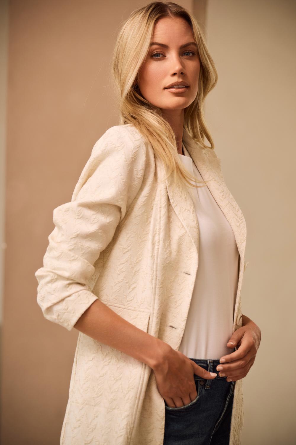 Maak kennis met de stijlvolle HELENA HART Blazer Tuxy in een elegante beige tint, perfect voor de modebewuste vrouw. Deze blazer is een must-have voor de Nederlandse zomergarderobe en voegt een vleugje klasse toe aan elke outfit.