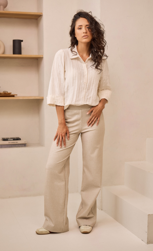 Ontdek de HELENA HART Blouse Polo Kreuk in een elegante ecru tint, perfect voor de zomerse dagen in Nederland. Deze blouse combineert moeiteloos stijl en comfort, ideaal voor zowel casual als zakelijke gelegenheden.