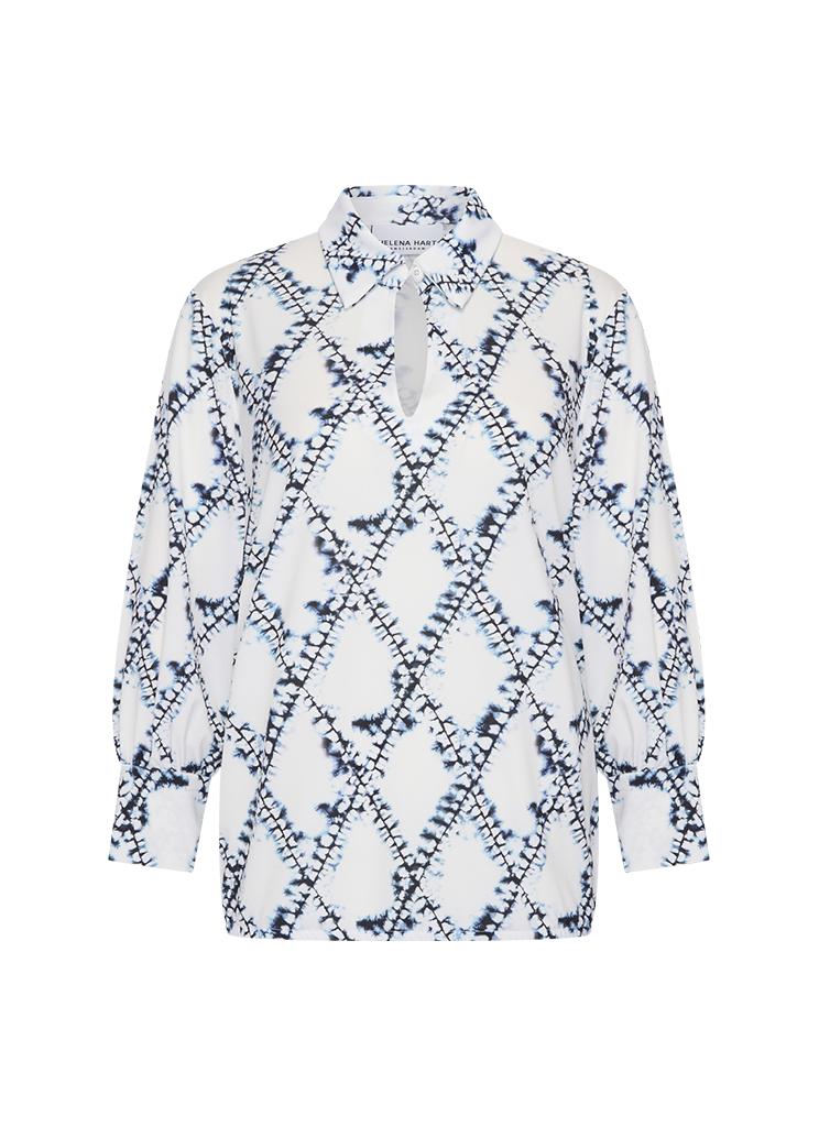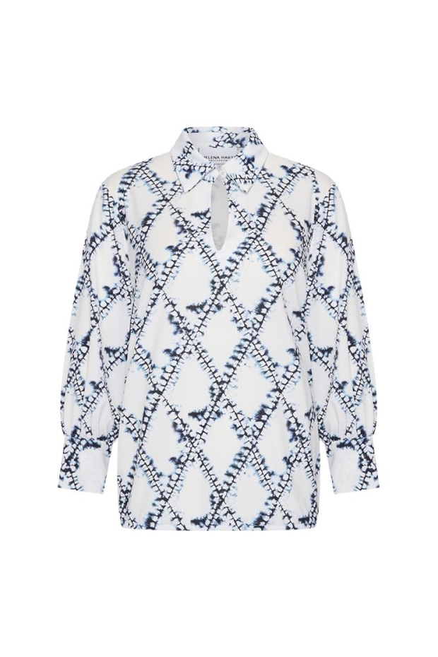 Maak kennis met de stijlvolle Top Liv Print van HELENA HART in een prachtige donkerblauwe tint. Perfect voor de Nederlandse zomers.
