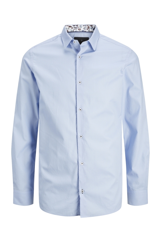 J&J Premium JPRBLALEEDS PRINT DOBBY L/S SHIRT LN 12268132 Chambray Blue COMFORT FIT