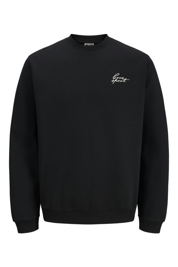 Maak kennis met de JCODUST SCRIPT SWEAT CREW NECK van JACK & JONES, een stijlvolle zwarte sweater die perfect is voor de Nederlandse zomerdagen. Deze sweater combineert comfort met een trendy uitstraling, ideaal voor een casual dagje uit in de stad.