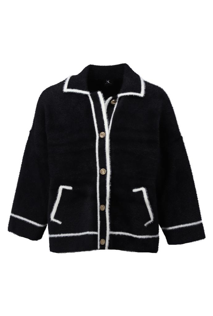 Ontdek de stijlvolle B846 cardigan van K-Design, perfect voor de modebewuste Nederlandse vrouw. Dit zwarte vest met knopen is een veelzijdige toevoeging aan je wintergarderobe. Ideaal voor een dagje in de stad of een gezellige avond uit.