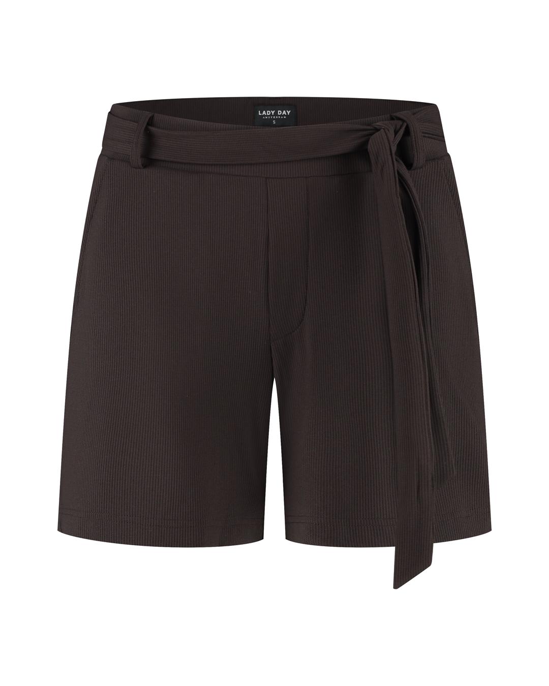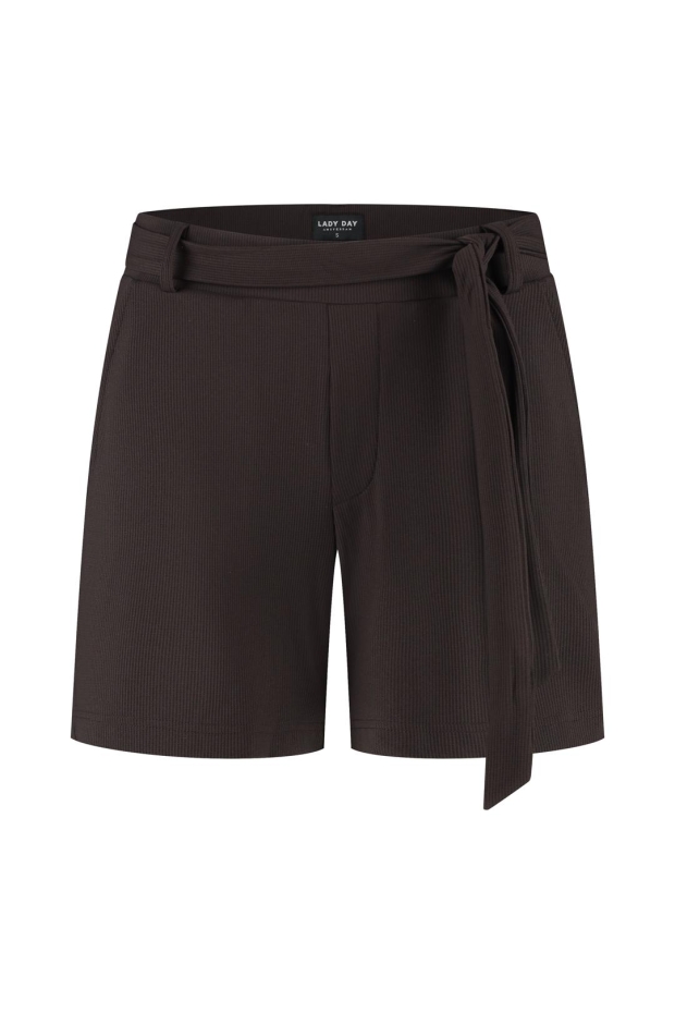 Maak kennis met de Terry korte broek van LADY DAY in een stijlvolle donkerbruine tint. Perfect voor de zomerse dagen in Nederland, deze broek combineert comfort met een trendy uitstraling.