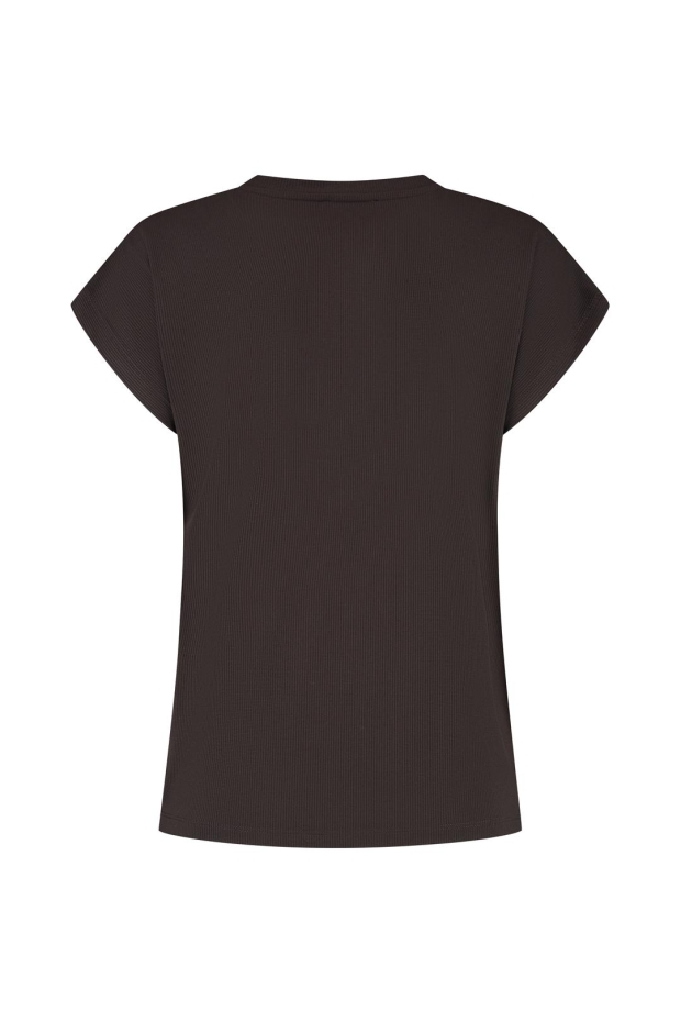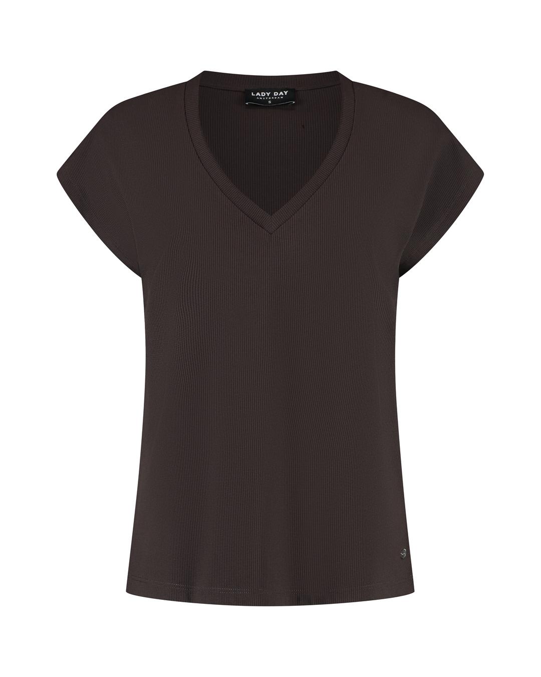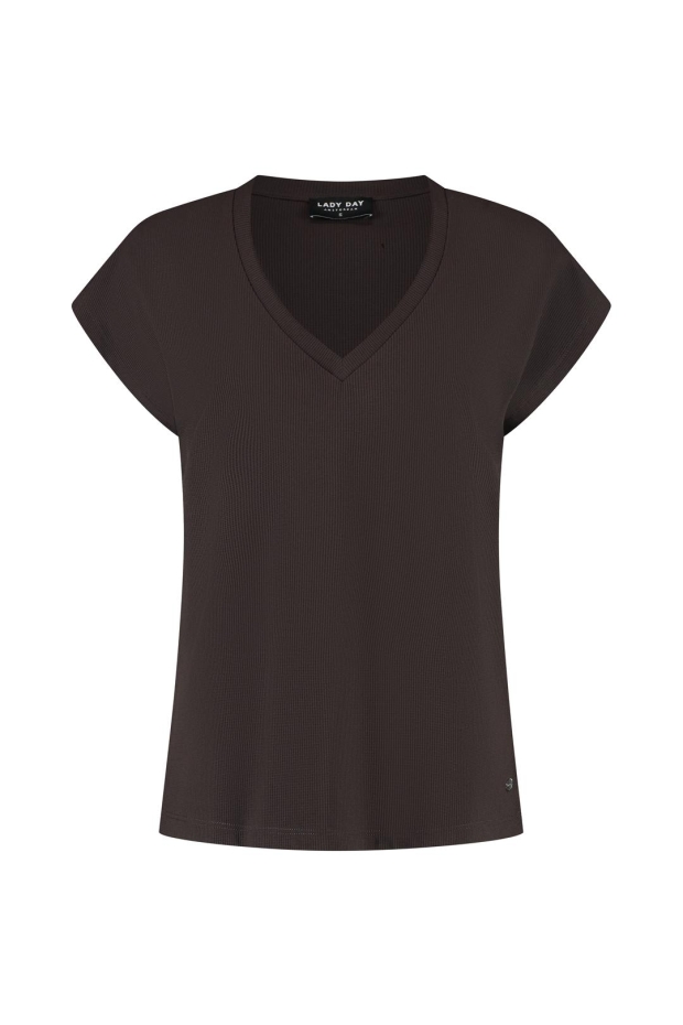 Maak kennis met het LADY DAY Cady T-shirt in een elegante donkerbruine tint. Dit veelzijdige shirt met korte mouwen is perfect voor de zomerse dagen in Nederland en voegt een vleugje stijl toe aan elke outfit.