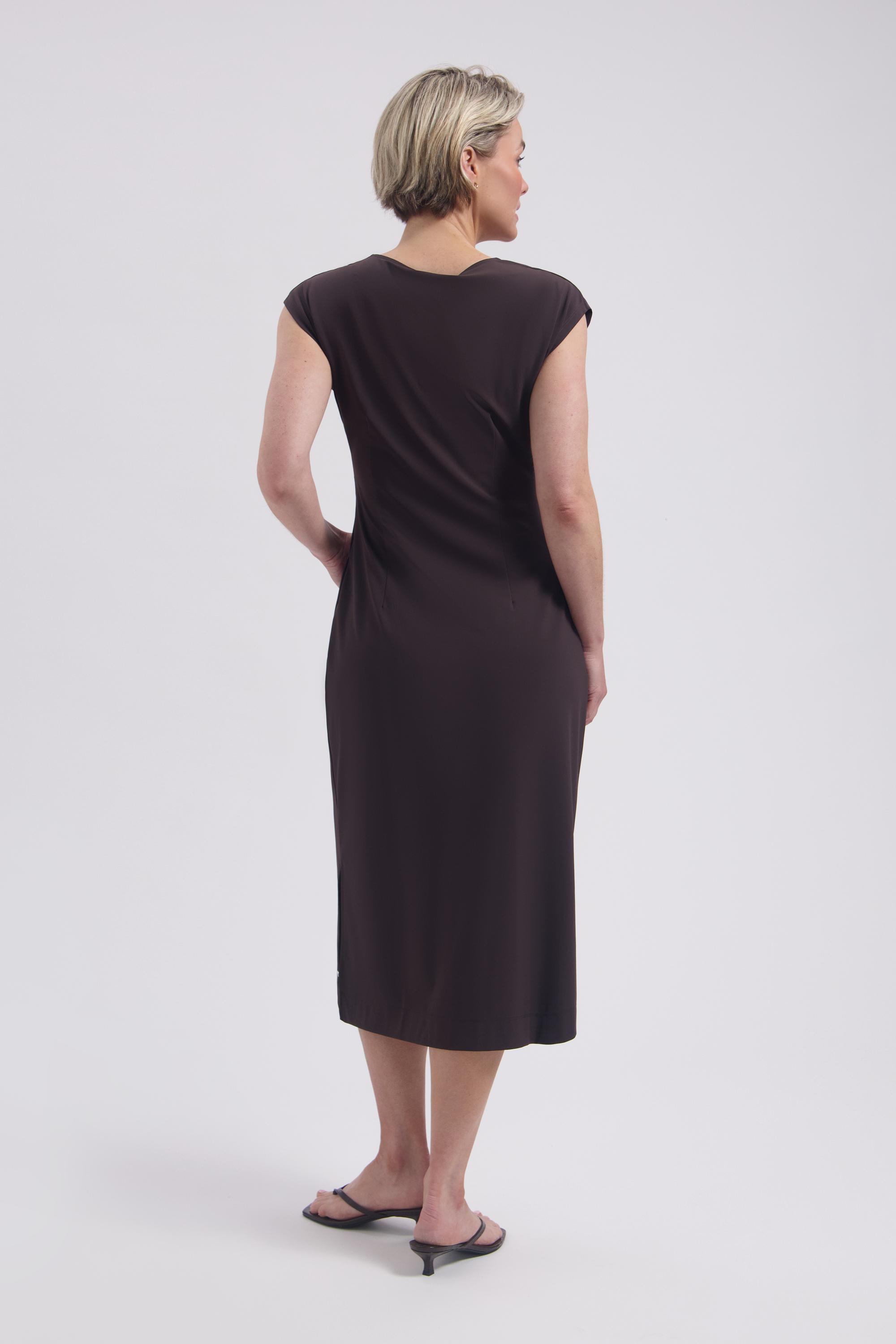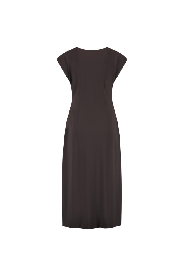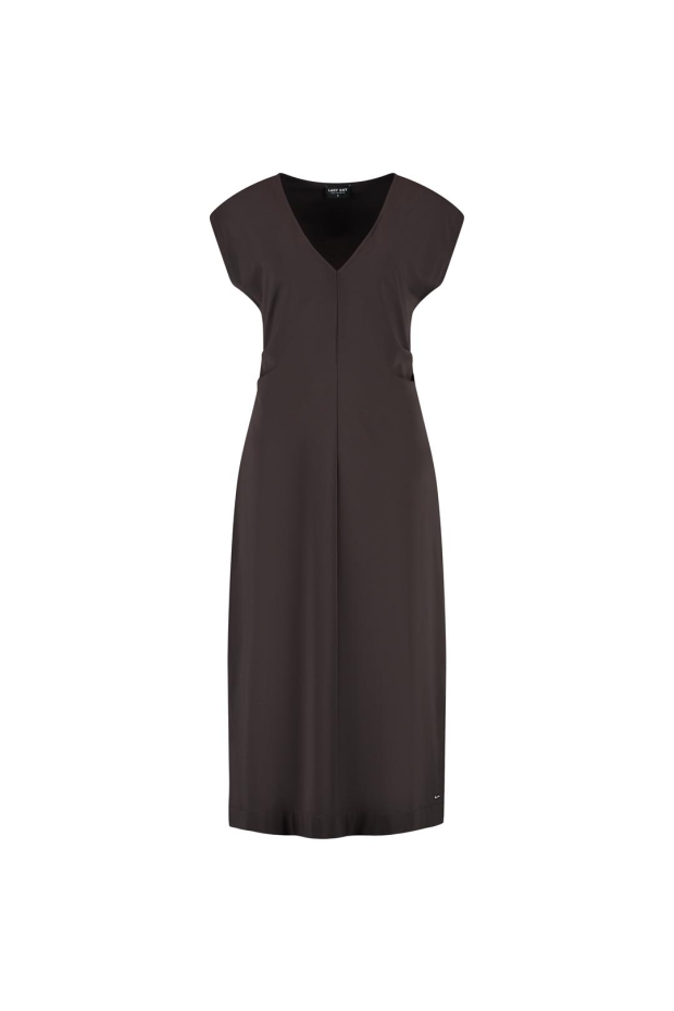 Maak kennis met de Doris jurk van LADY DAY in een elegante donkerbruine tint. Deze zomerse jurk is perfect voor elke gelegenheid en voegt een vleugje verfijning toe aan je garderobe.