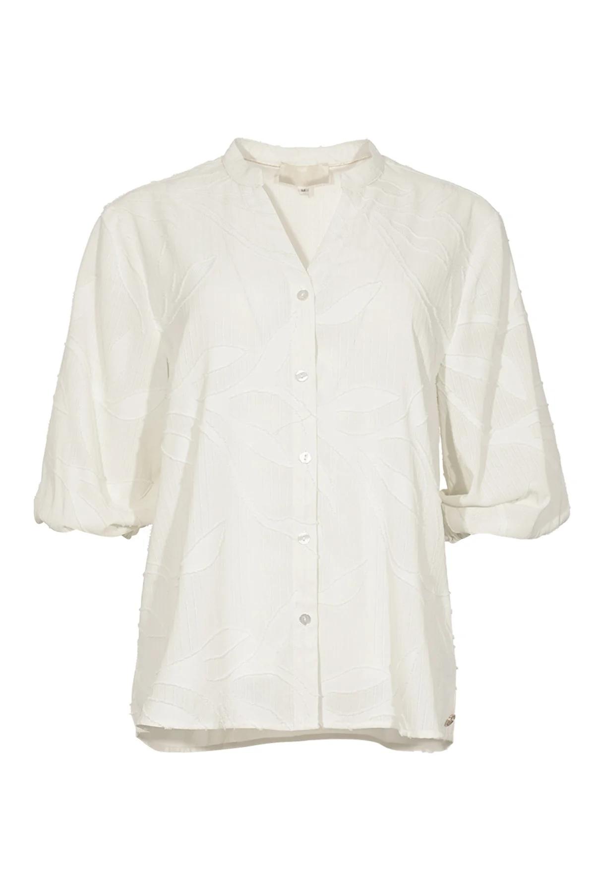Maak kennis met de NINA blouse van MAICAZZ in een elegante offwhite tint. Deze damesblouse is perfect voor de zomerse dagen in Nederland en biedt een tijdloze stijl die je garderobe compleet maakt.