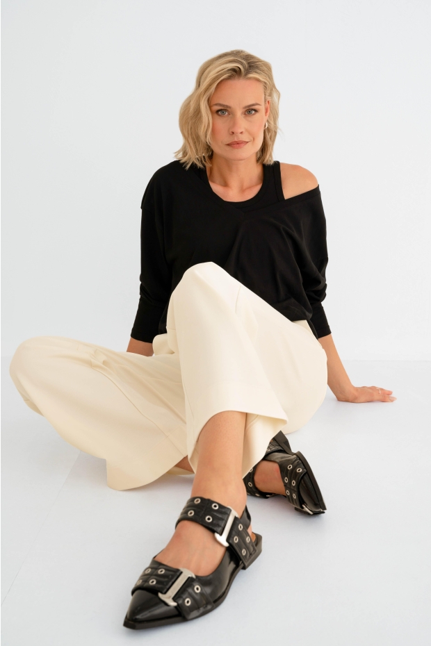 Ontdek de SABIYA top van MAICAZZ, een stijlvolle aanvulling voor jouw zomergarderobe. Deze zwarte top met lange mouwen is perfect voor de modebewuste vrouw die houdt van een tijdloze look.