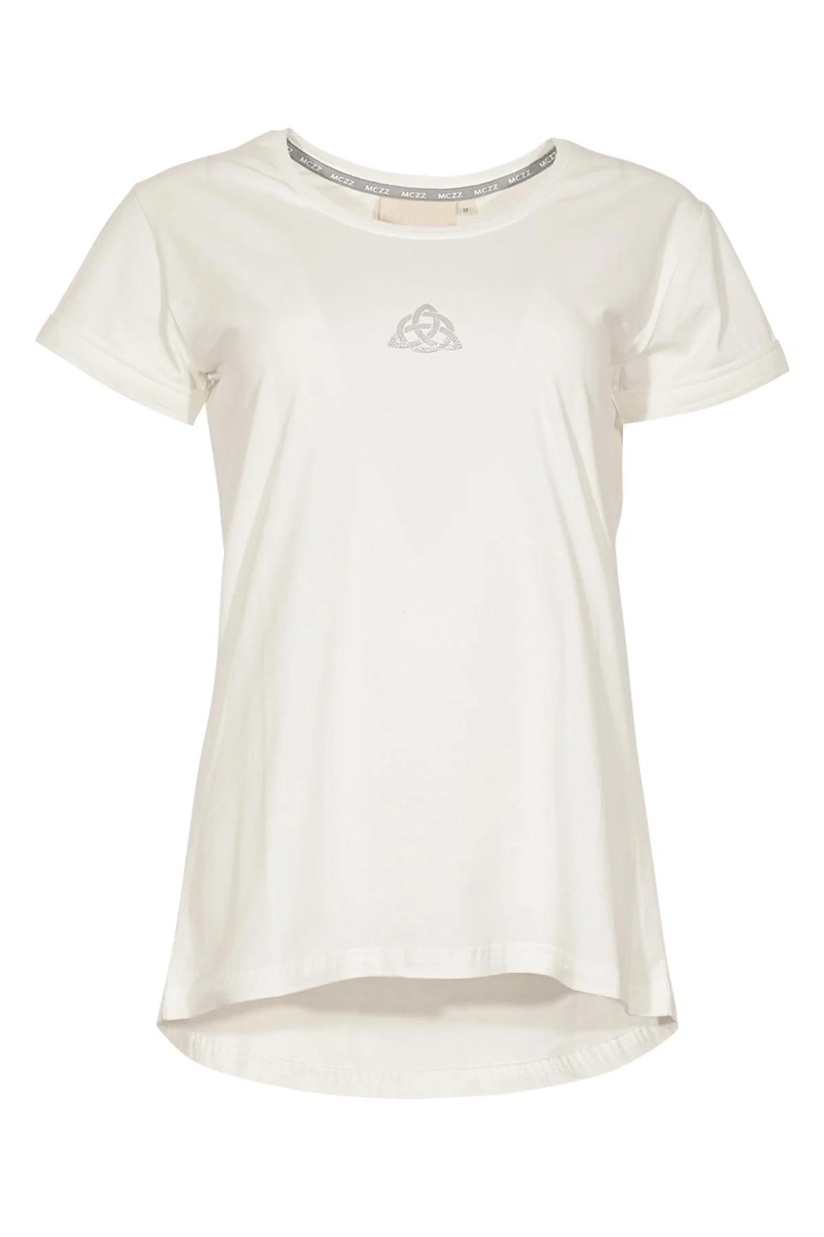 Maak kennis met de NONORA T-shirt van MAICAZZ, een stijlvolle keuze voor de modebewuste vrouw. Dit offwhite T-shirt met zilveren accenten is perfect voor de Nederlandse zomer en voegt een vleugje elegantie toe aan elke outfit.