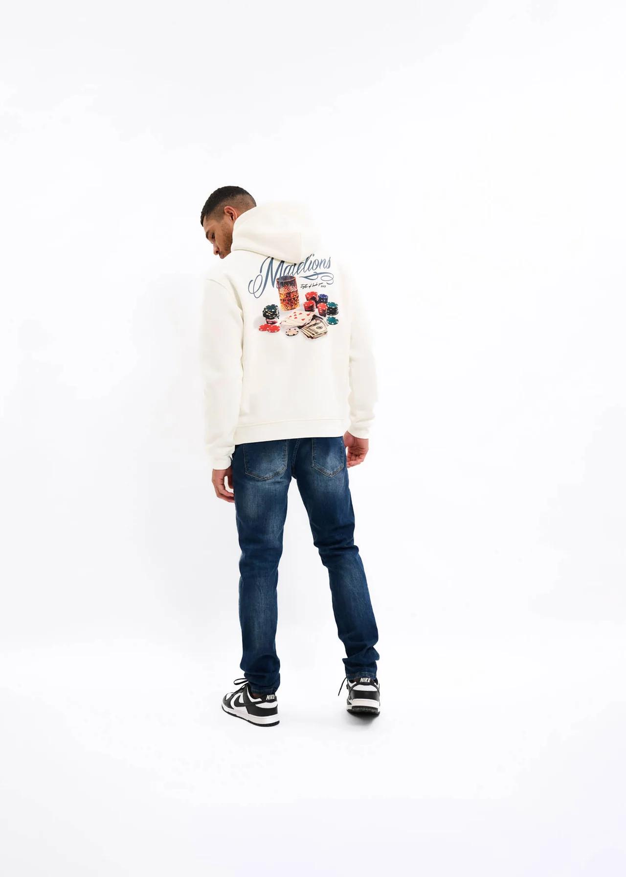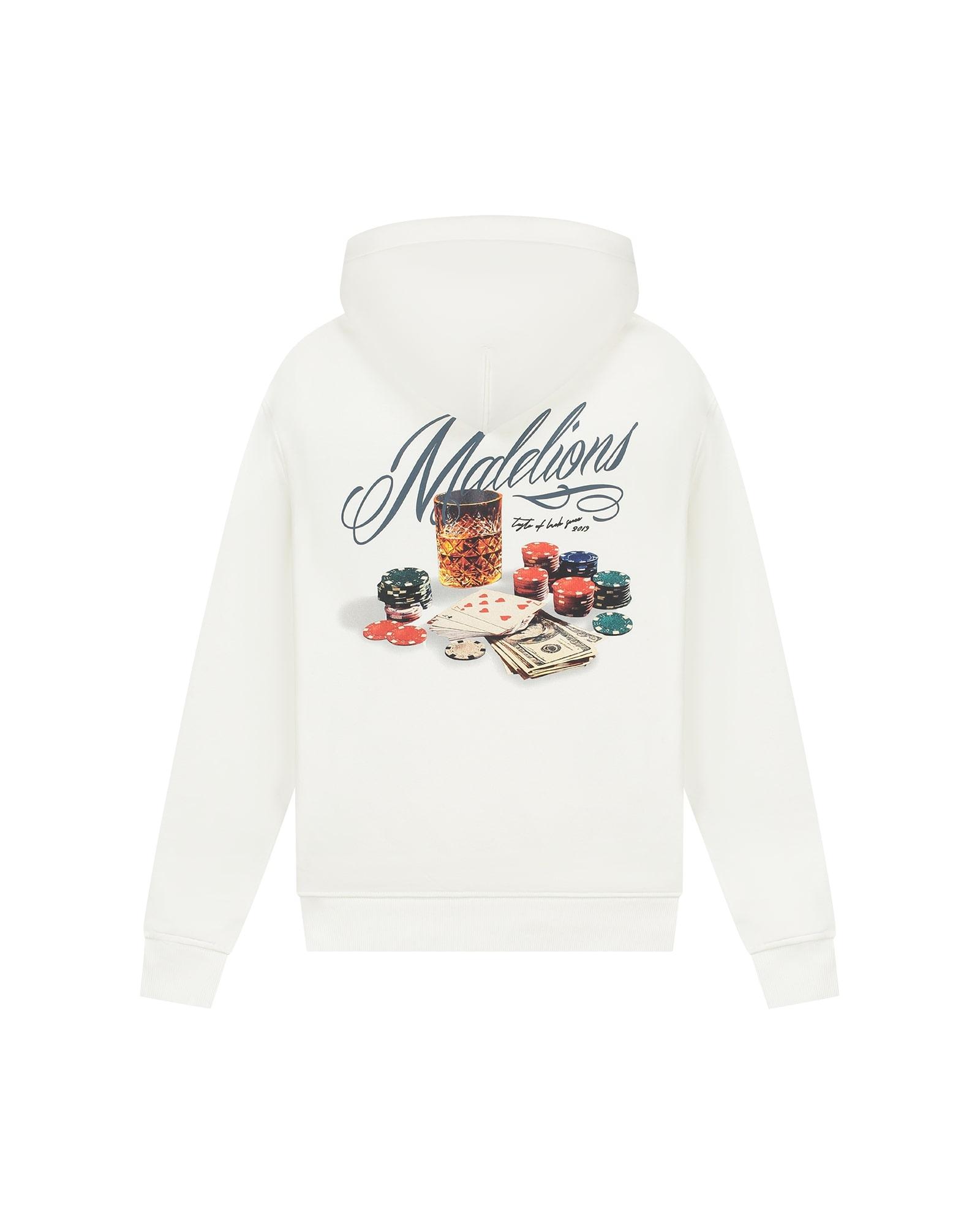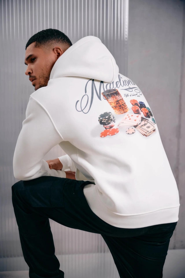 Maak kennis met de stijlvolle Playing Cards Hoodie van MALELIONS. Deze off-white hoodie is perfect voor heren die comfort en mode willen combineren tijdens de koudere wintermaanden.