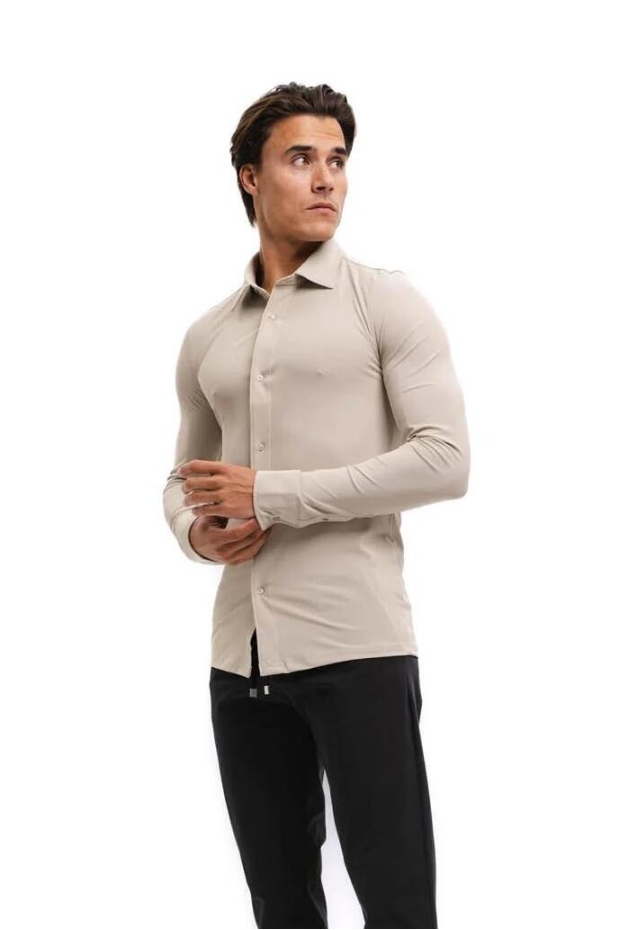 Maak kennis met het MALELIONS Stretch Shirt in een stijlvolle licht taupe kleur. Dit herenoverhemd is perfect voor de modebewuste man die houdt van comfort en een moderne uitstraling. Ideaal voor de Nederlandse zomers, of je nu een dagje in Amsterdam doorbrengt of een zakelijke afspraak hebt.