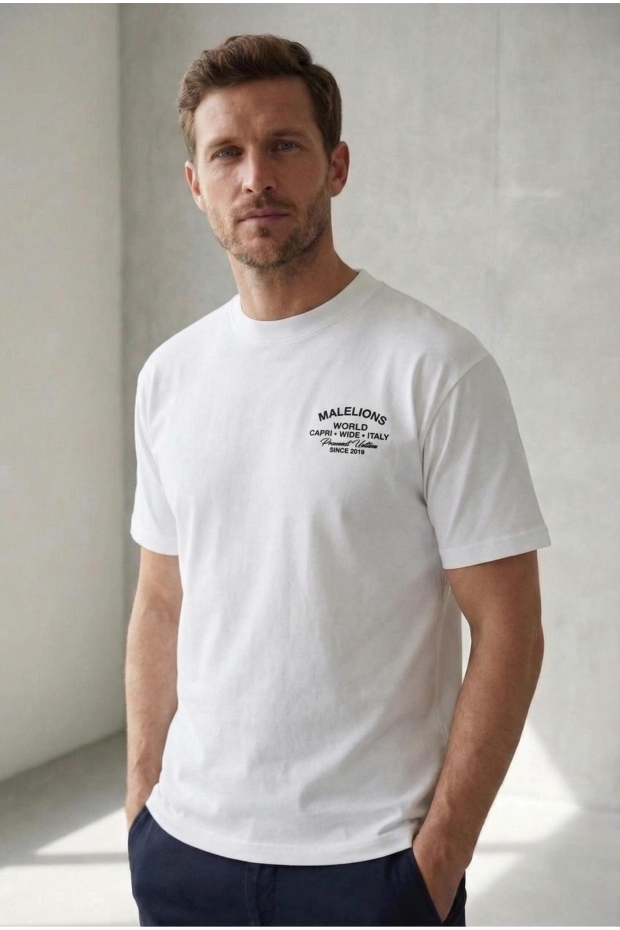 Verken de stijlvolle wereld van MALELIONS met het Permanent Vacation T-Shirt in fris wit. Dit heren T-shirt is perfect voor de zomerse dagen in Nederland en biedt een casual, maar modieuze uitstraling.