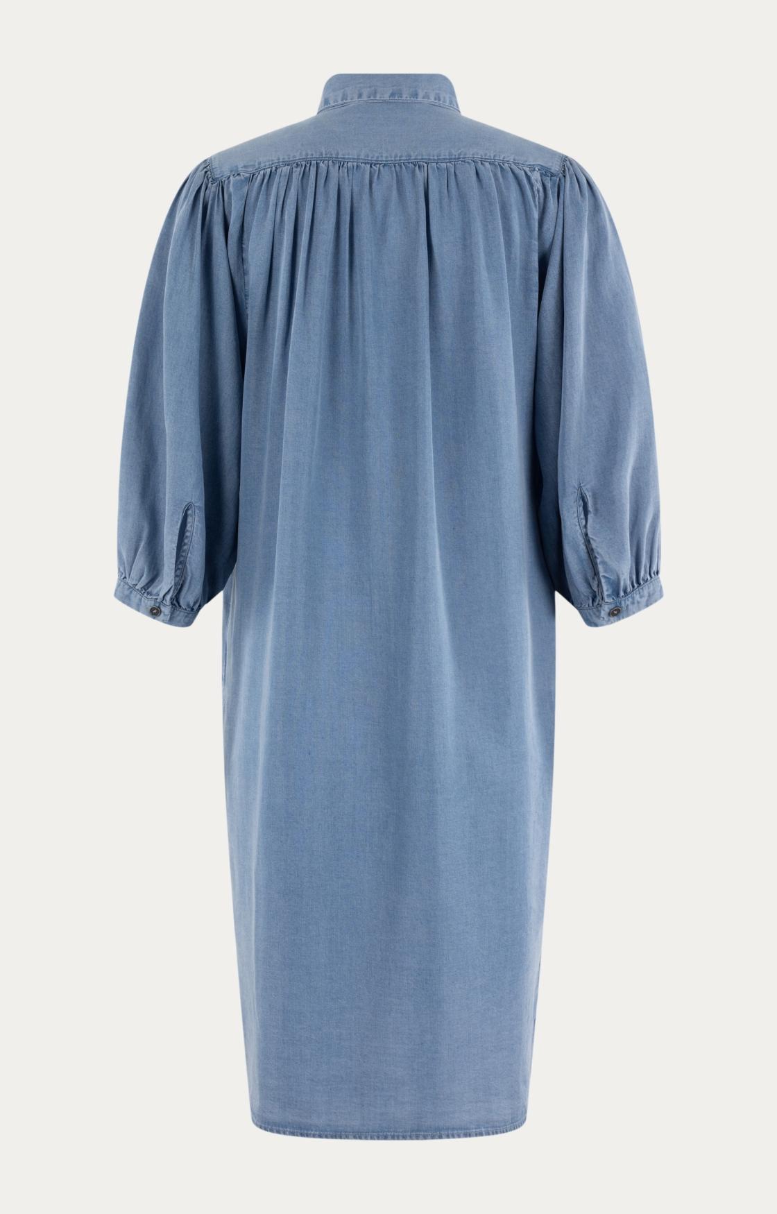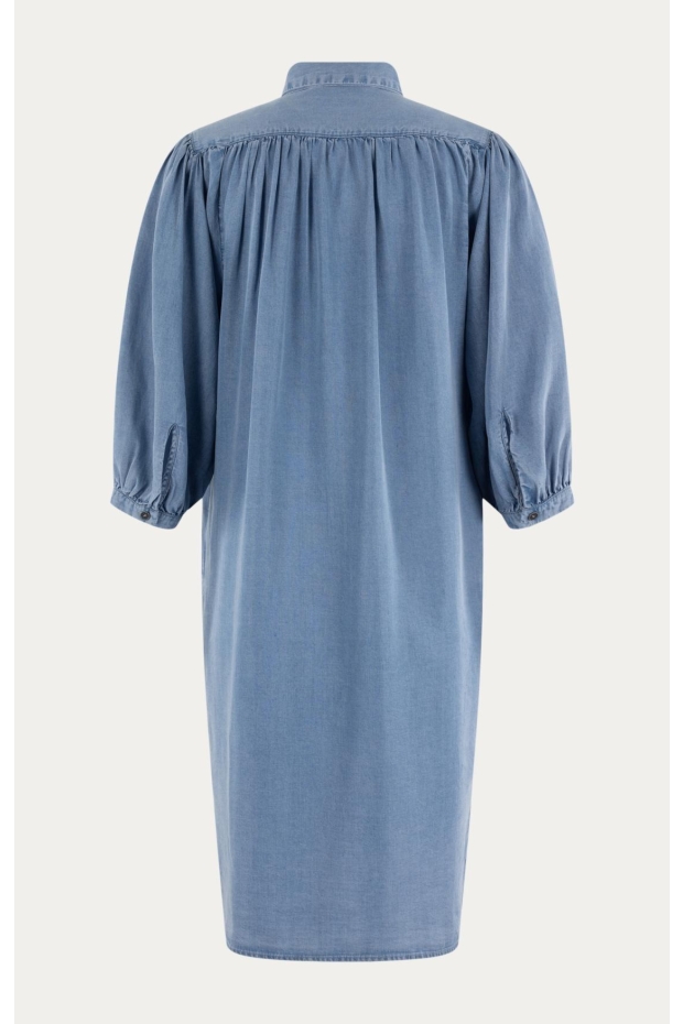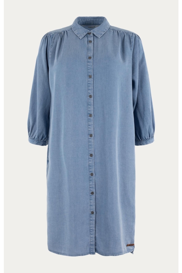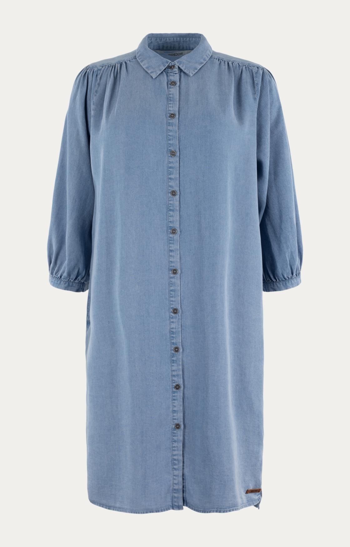 Maak kennis met de MOSCOW Joryn jurk in een prachtige blauwe denim tint. Deze zomerjurk is perfect voor een zonnige dag in Nederland, of je nu door de grachten van Amsterdam wandelt of geniet van een picknick in het park.
