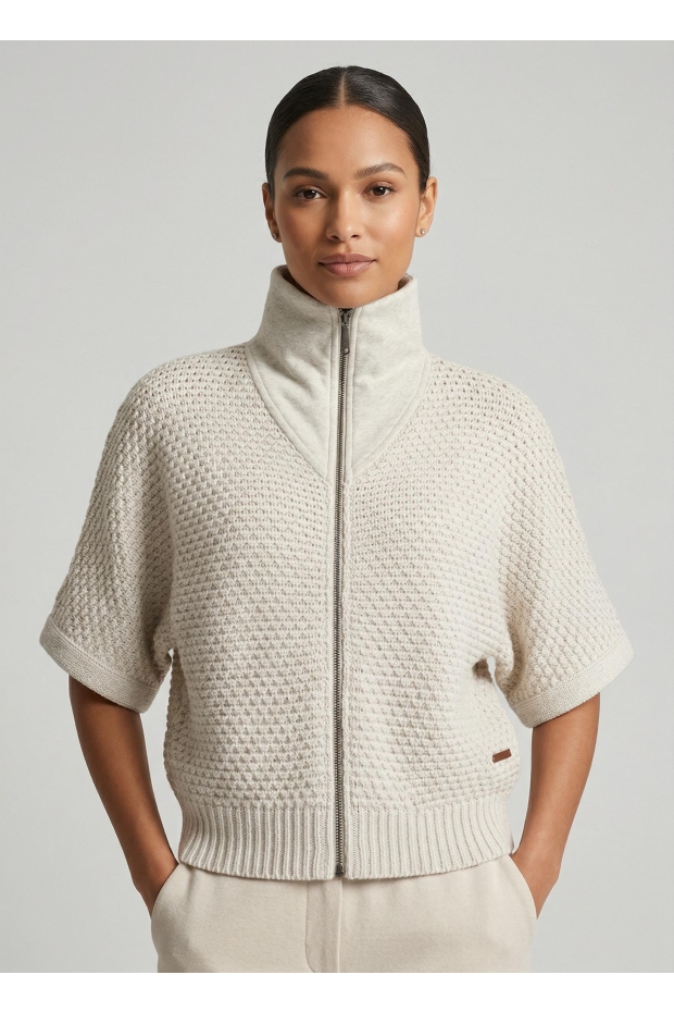Ontdek de elegante MOSCOW Tim vest in een zachte ecru tint, perfect voor de Nederlandse zomerdagen. Dit damesvest combineert moeiteloos stijl en comfort, ideaal voor een casual dagje in de stad of een ontspannen avondwandeling.