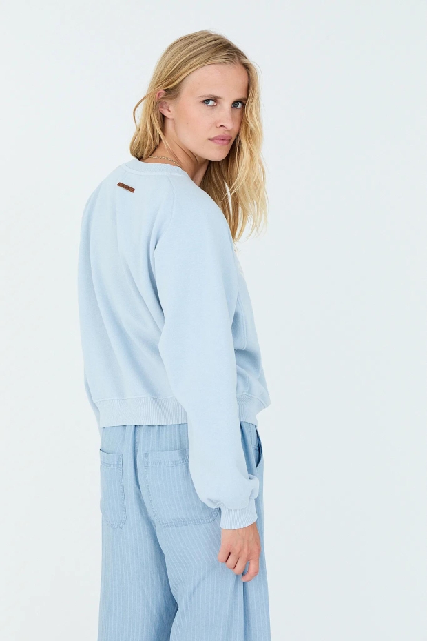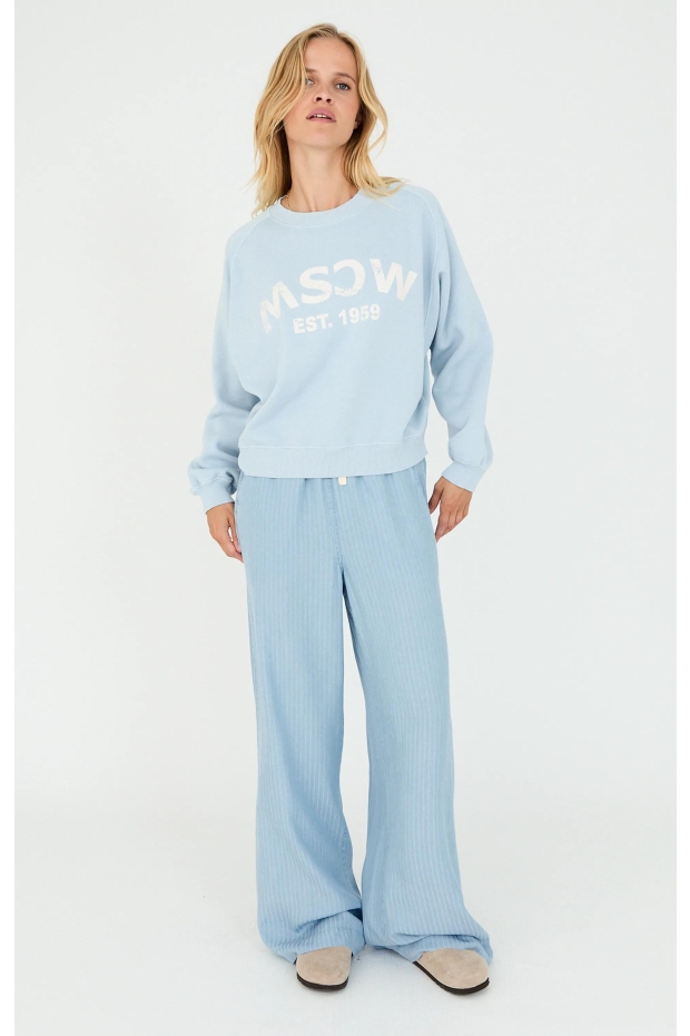 Ontdek de MOSCOW 76A-04-Pepper sweater in een frisse lichtblauwe tint, perfect voor de Nederlandse zomerdagen. Deze stijlvolle damestrui combineert comfort met een trendy uitstraling, ideaal voor een casual dagje uit in Amsterdam of een ontspannen middag in het park.