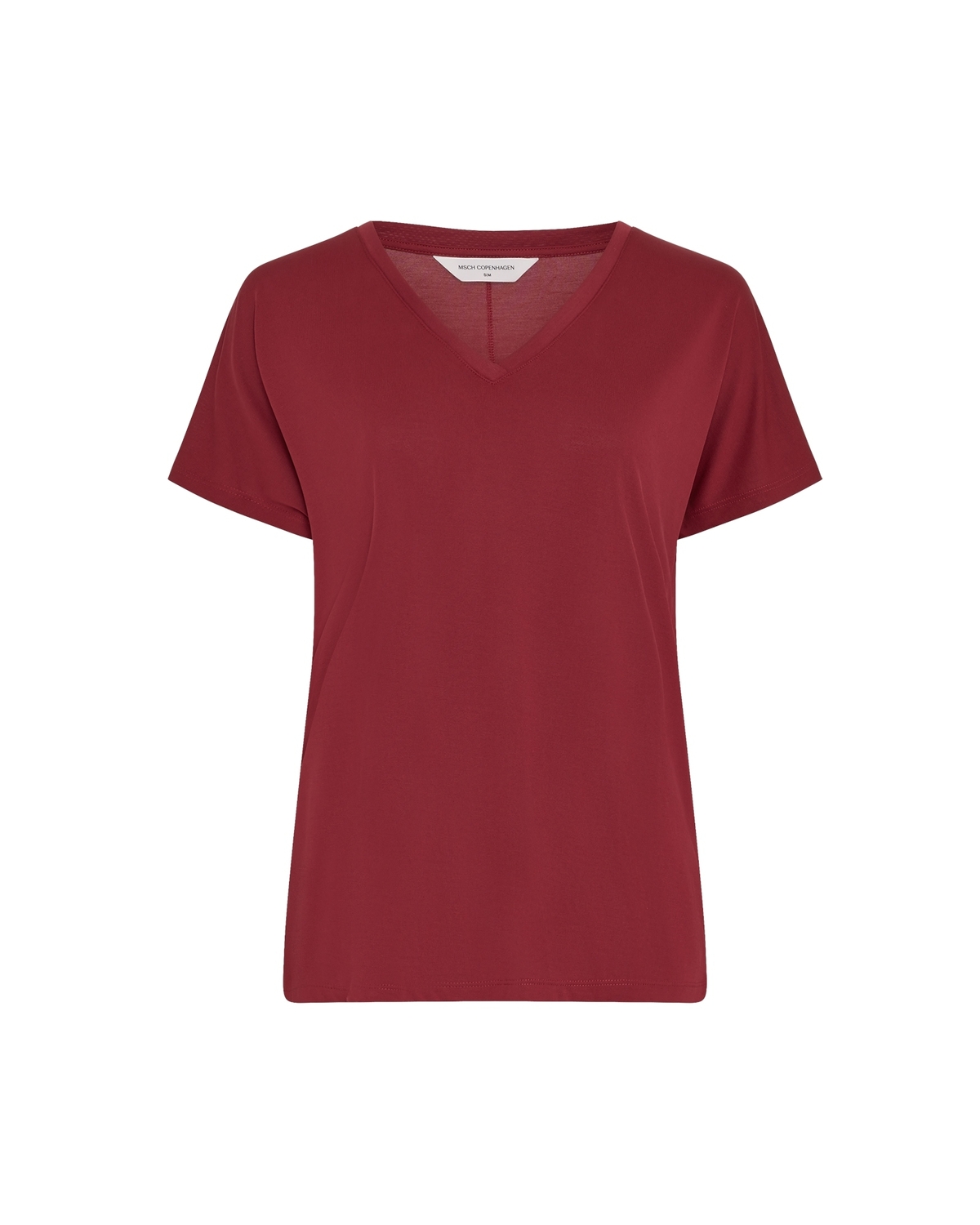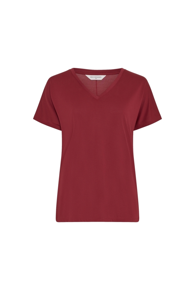 Verken de stijlvolle MSCHFenya Modal V Neck Tee van MSCH Copenhagen in een prachtige rode tint, perfect voor de zomerse dagen in Nederland.