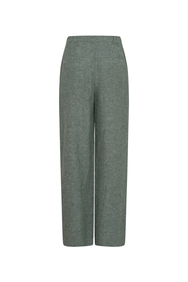 Maak kennis met de MSCH Copenhagen Pennie Ginia HW Pants in een prachtige groene tint. Deze stijlvolle damesbroek is perfect voor de zomerse dagen in Nederland en biedt een verfijnde touch aan elke outfit.