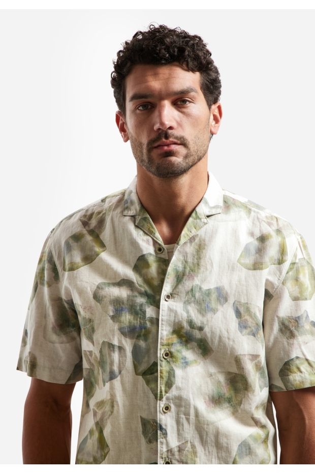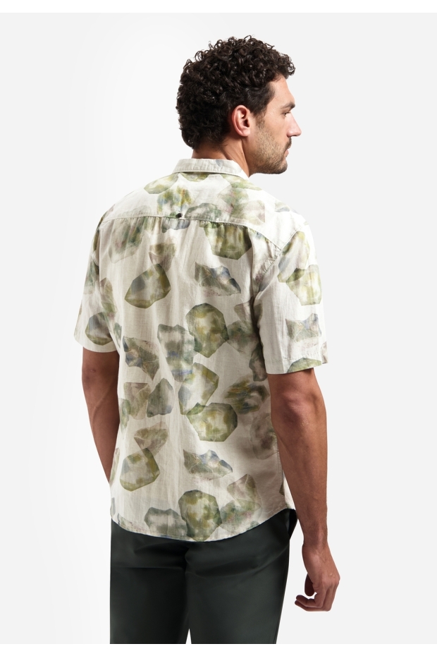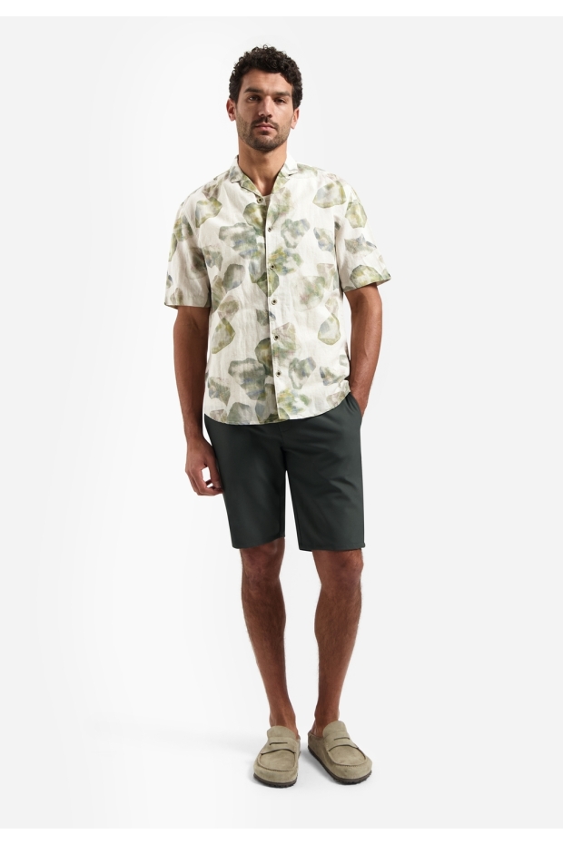 No- Excess Shirt Short Sleeve Linen Blend Allover Printed 314 050 green