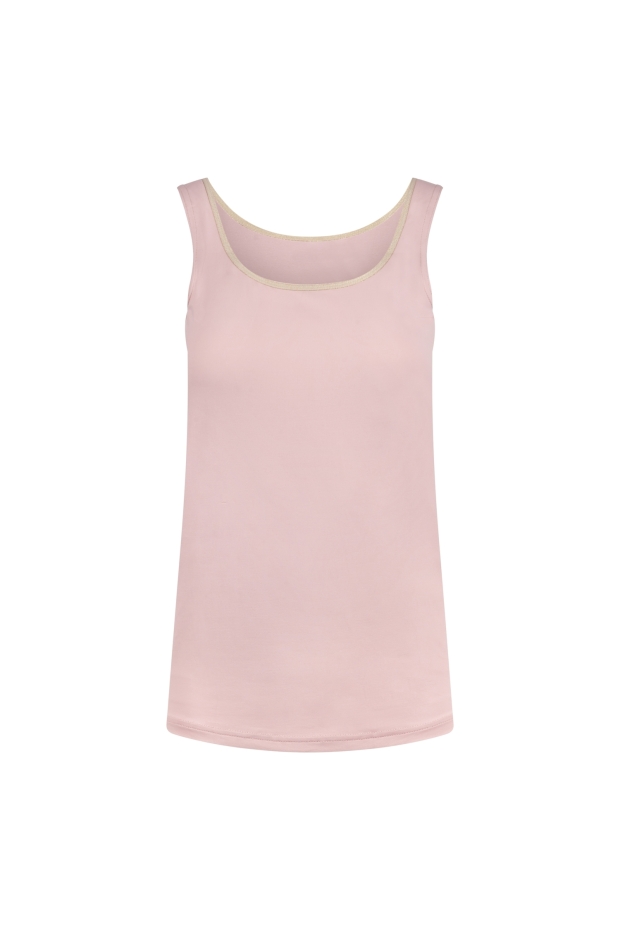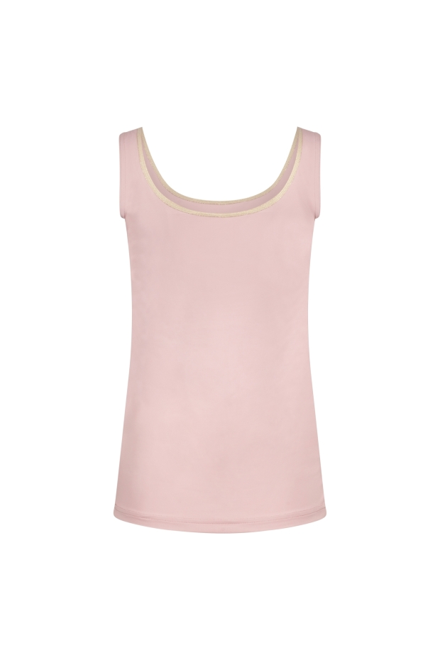 Ontdek de Juba Singlet van NUKUS, een stijlvolle toevoeging aan je zomergarderobe. Deze prachtige singlet in een zachte rozetint met een vleugje goud is perfect voor zonnige dagen in Nederland.