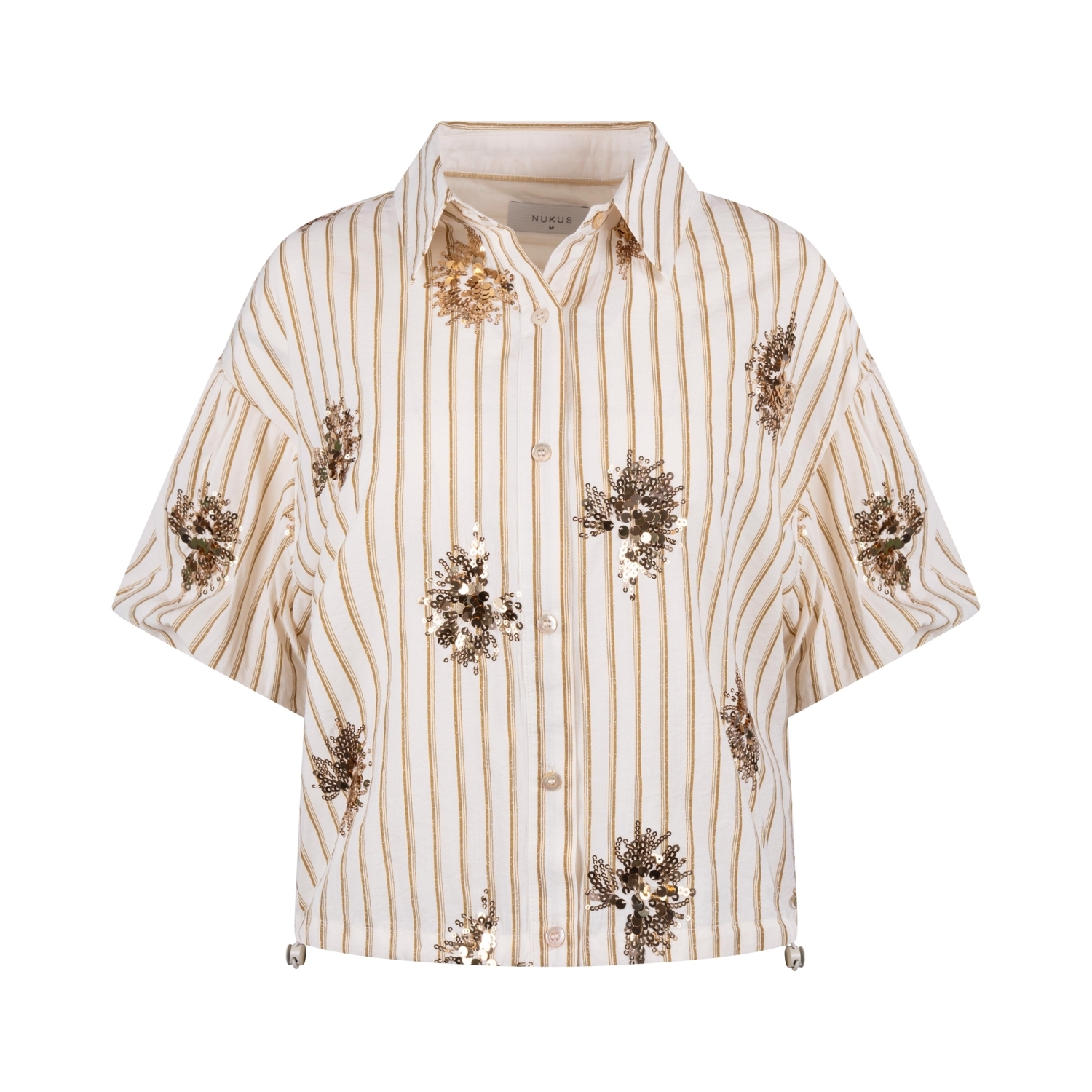 Maak kennis met de Leia Blouse Stripe Paillet van NUKUS, een stijlvolle toevoeging aan jouw zomergarderobe. Deze off-white blouse met subtiele strepen en pailletten is perfect voor een zomerse dag in de stad of een avondje uit.