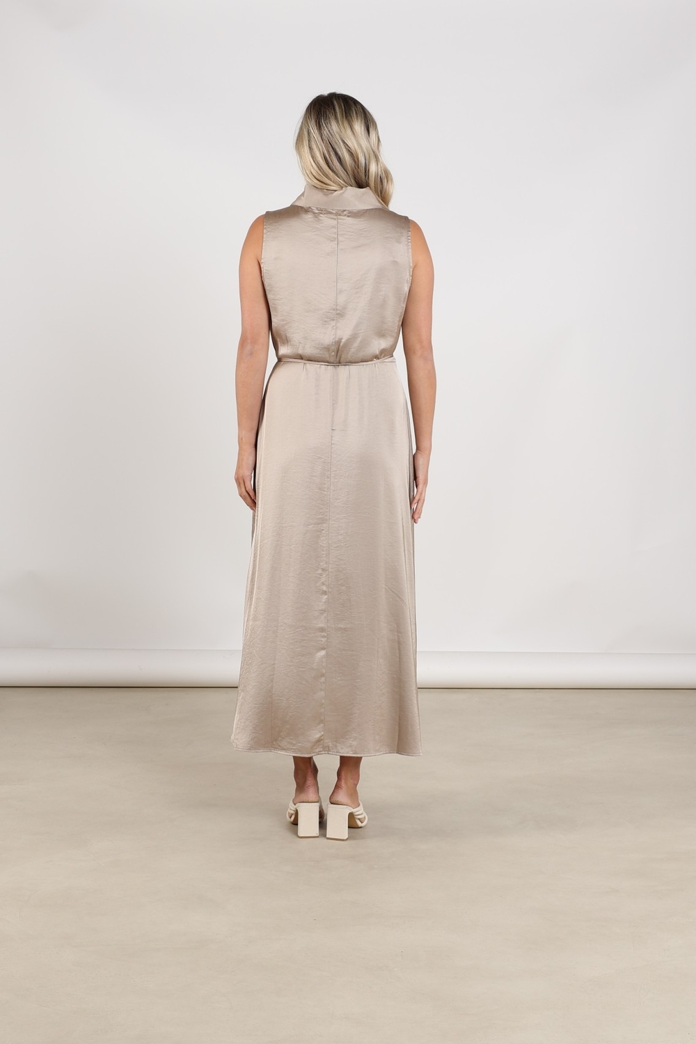 Verken de elegante Violet Dress Silky van NUKUS, perfect voor de Nederlandse zomerdagen. Deze lange jurk in een verfijnde taupe tint straalt luxe en comfort uit.