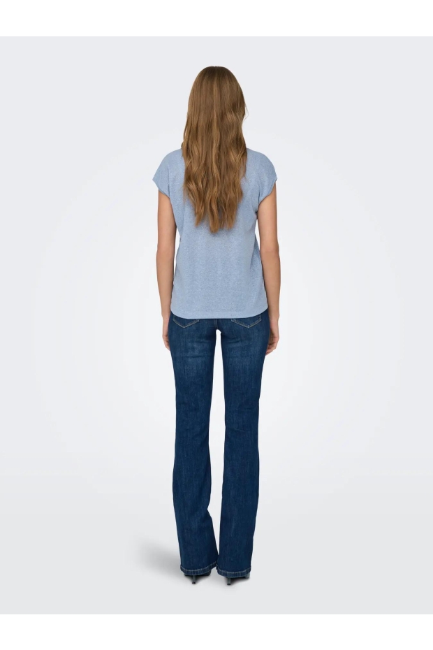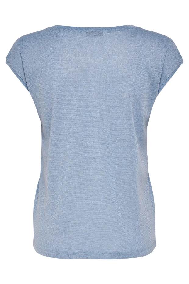 Maak kennis met de ONLSILVERY S/S V NECK LUREX TOP van ONLY in een prachtige Halogen Blue tint. Deze dames top is een tijdloze aanvulling op je garderobe en perfect voor elke gelegenheid.