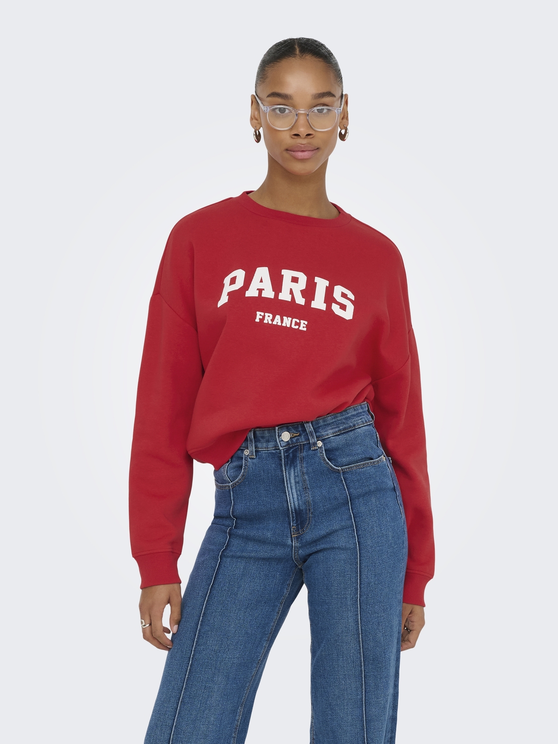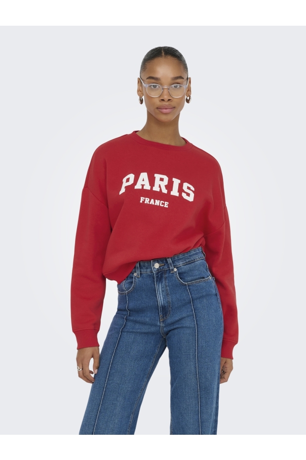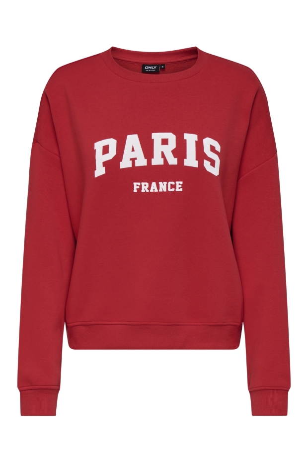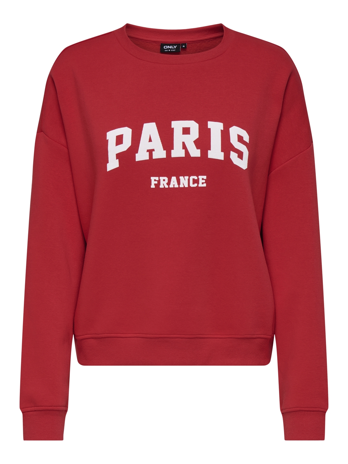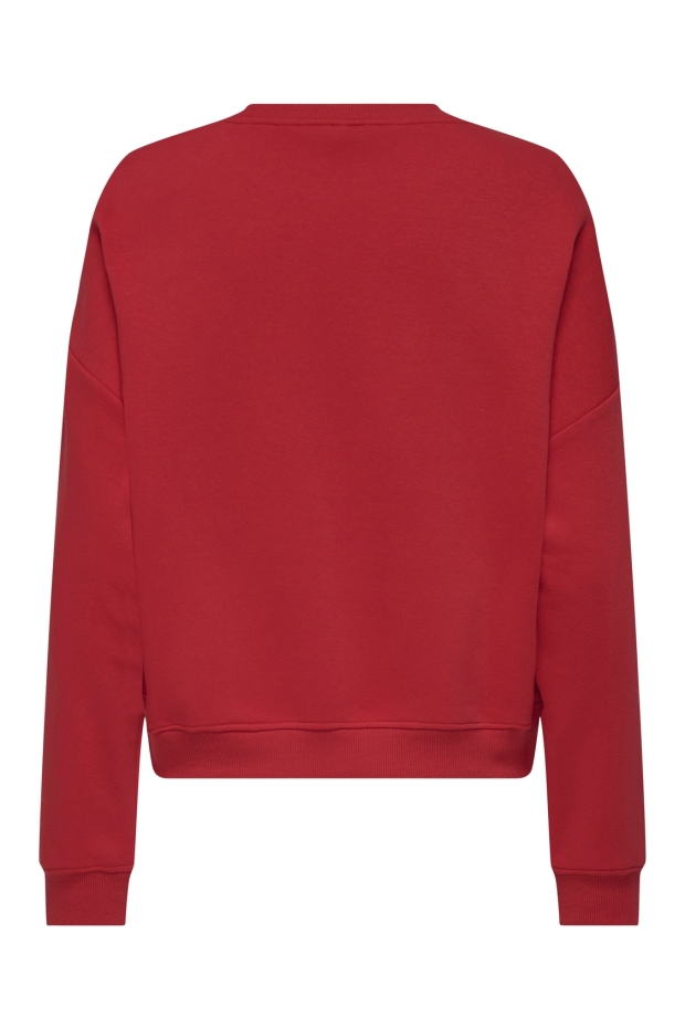 Maak kennis met de ONLY ONLSWEAT LIFE L/S CREW sweater in de opvallende kleur True Red Paris. Deze damestrui combineert comfort met een casual stijl, perfect voor elke gelegenheid.