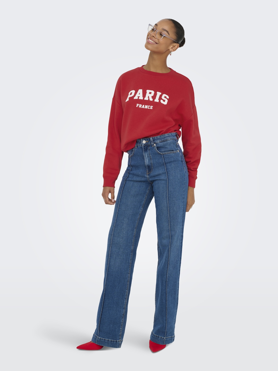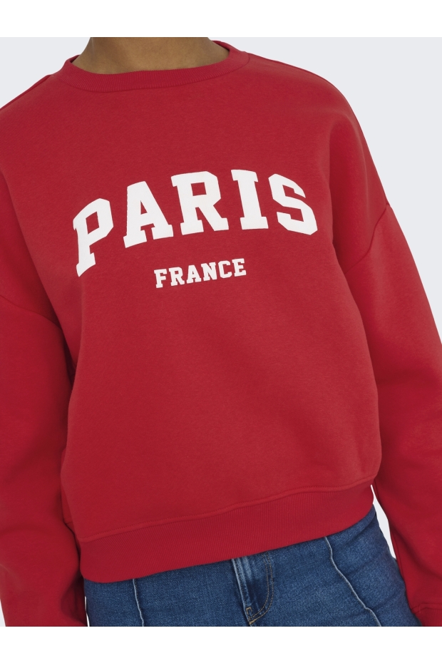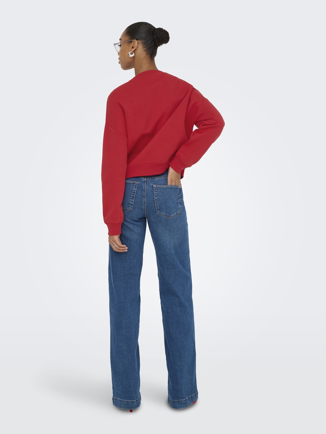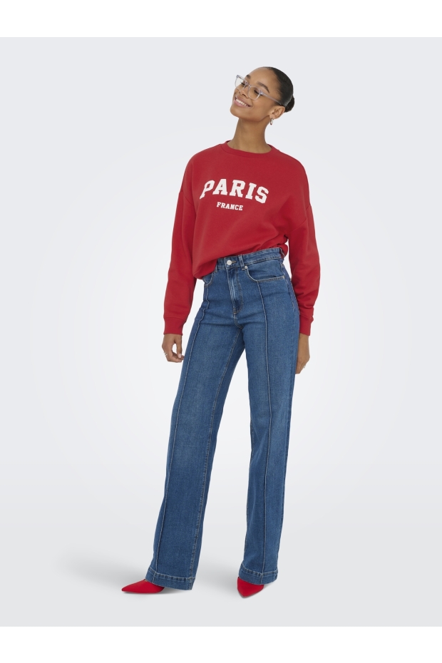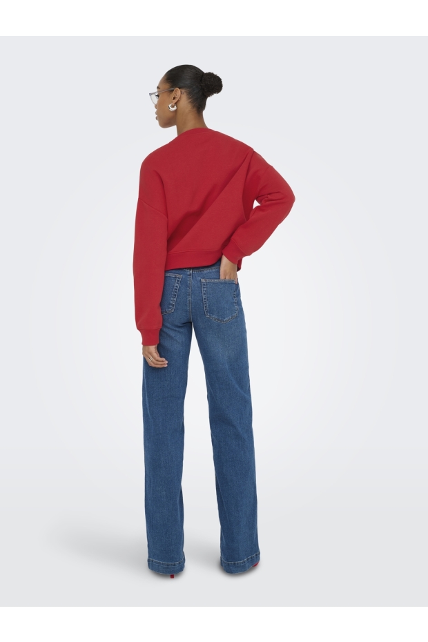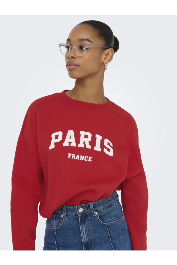 Maak kennis met de ONLY ONLSWEAT LIFE L/S CREW sweater in de opvallende kleur True Red Paris. Deze damestrui combineert comfort met een casual stijl, perfect voor elke gelegenheid.
