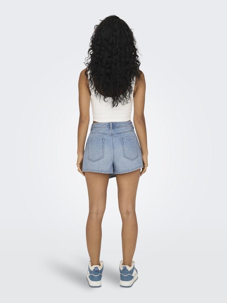 Maak kennis met de perfecte zomerse toevoeging aan je garderobe: de lichtblauwe denim korte broek van ONLY. Deze stijlvolle en comfortabele korte broek is ontworpen om je door de warme zomerdagen heen te helpen met een frisse en modieuze uitstraling.
