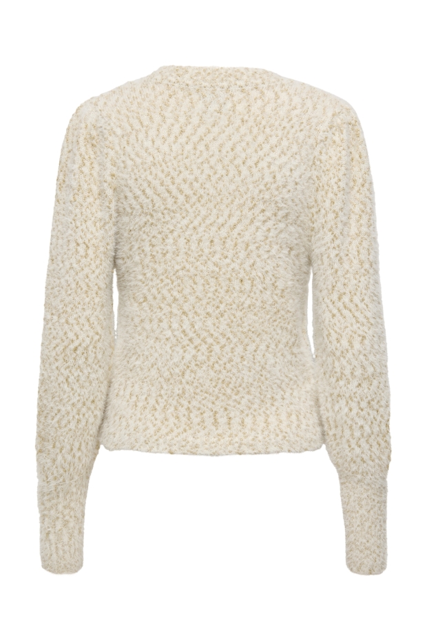 Ontdek de ONLROSETTE LS CARDIGAN van ONLY, een stijlvolle damesvest in een prachtige ecru tint met een vleugje goudglitter. Perfect voor de Nederlandse winterdagen, of je nu een wandeling langs de grachten maakt of gezellig binnen blijft.
