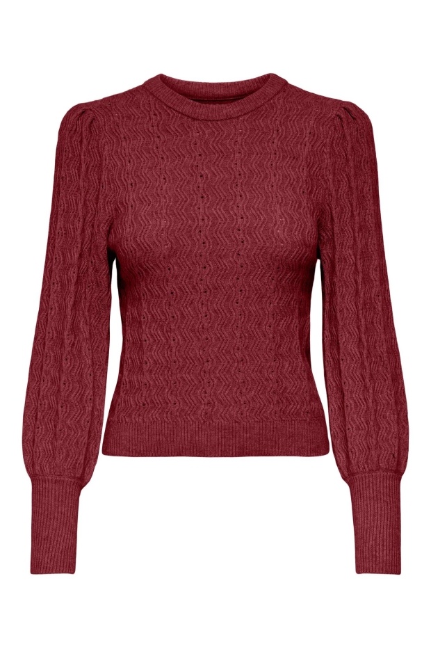 Ervaar de stijlvolle en comfortabele ONLKATIA trui van ONLY, perfect voor de winter. Deze damestrui in een prachtige rode kleur is een must-have voor je garderobe. Met zijn trendy pofmouwen en ronde hals biedt het een modieuze uitstraling die je warm en stijlvol houdt.