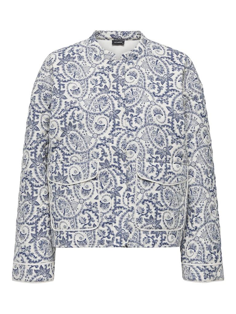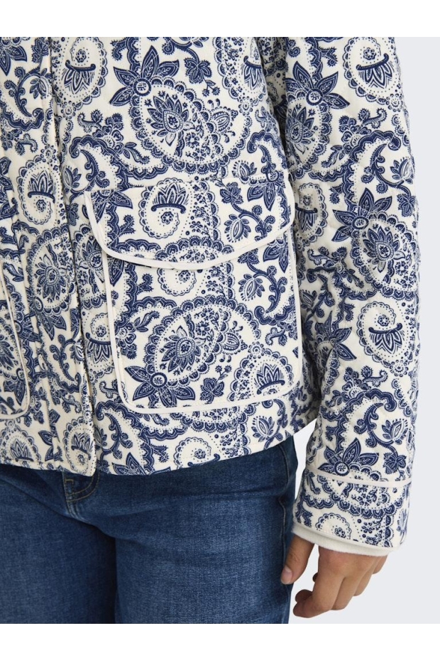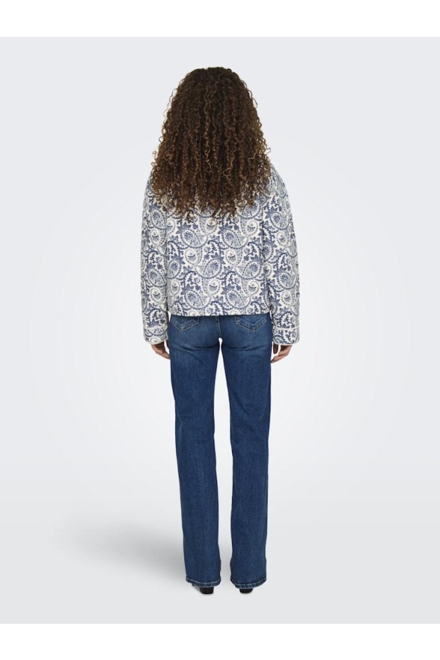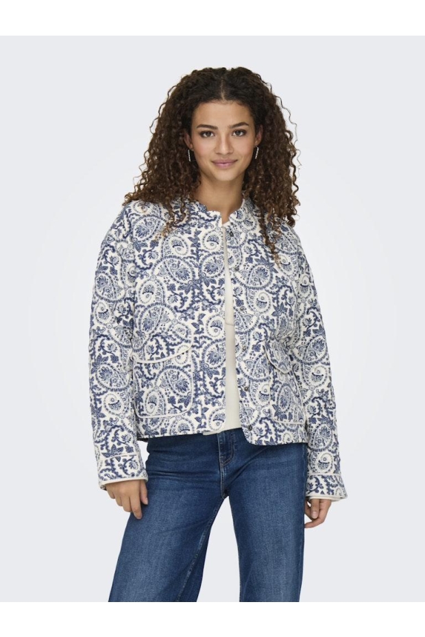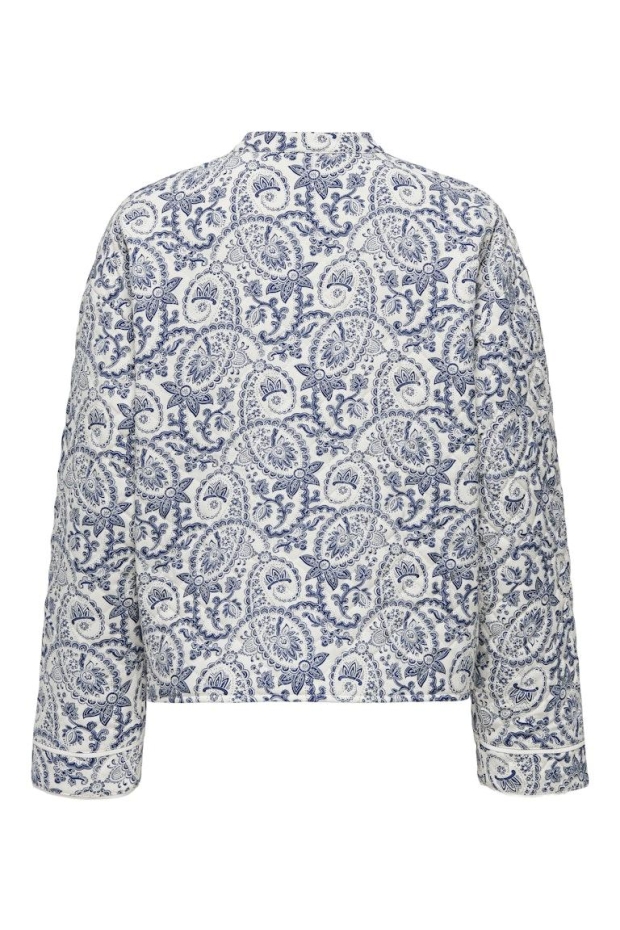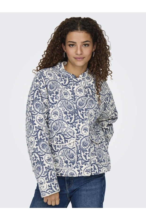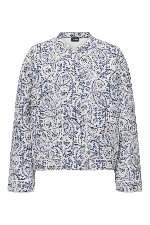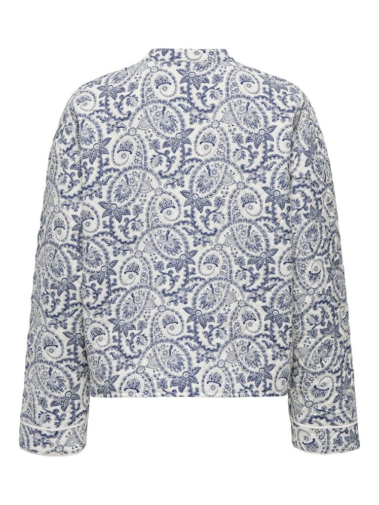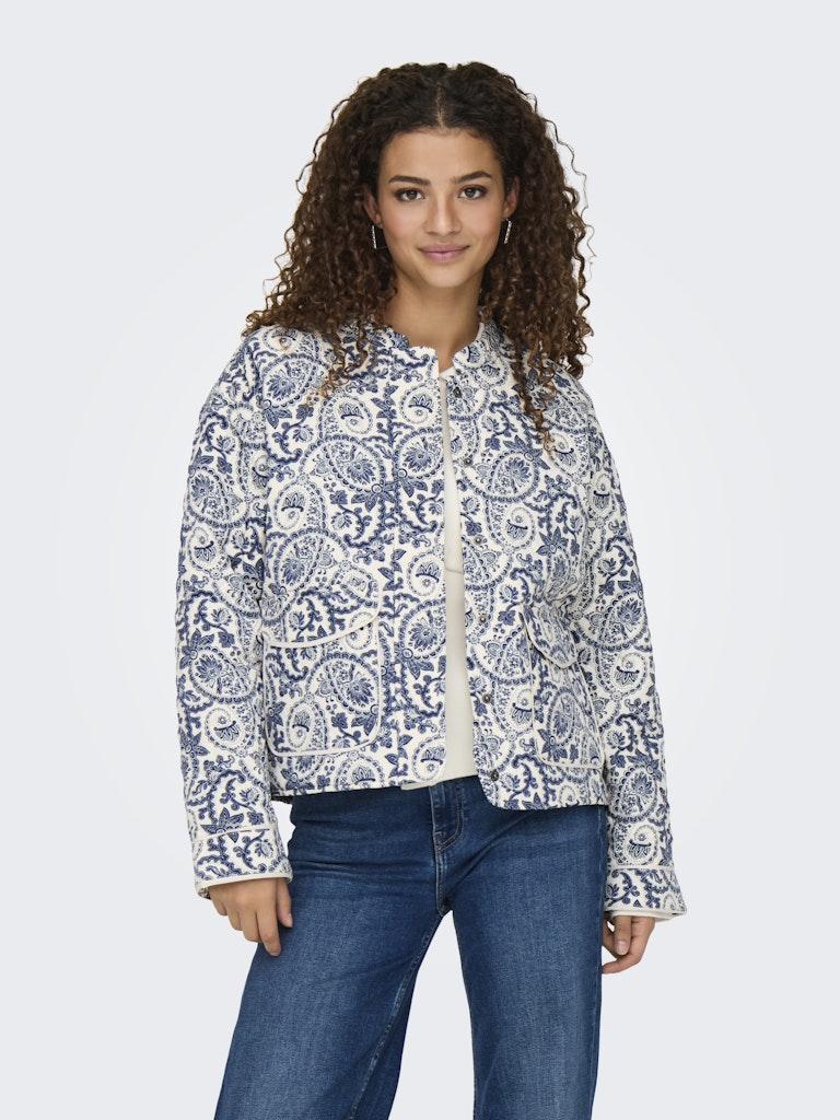 Maak kennis met de stijlvolle ONLHALLIE gewatteerde jas van ONLY, perfect voor dames die op zoek zijn naar een modieuze en comfortabele jas. Deze jas in een prachtige off-white kleur met een unieke blauwe tegelprint is een must-have voor je garderobe.